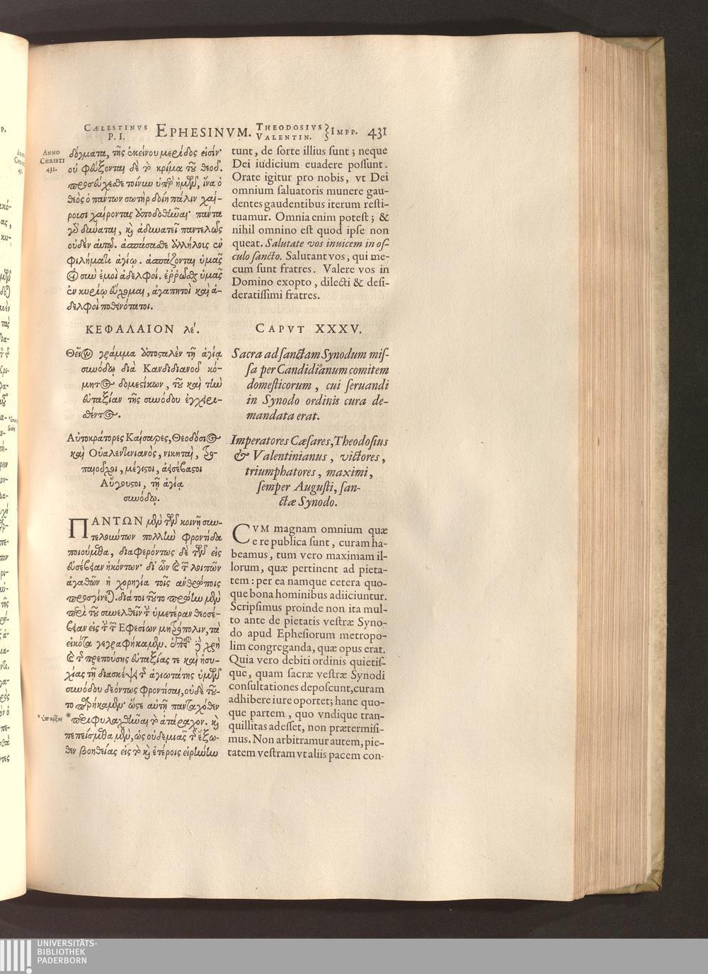 Capvt XXXV. Sacra ad sanctam Synodum missa per Candidianum comitem domesticorum,[...]