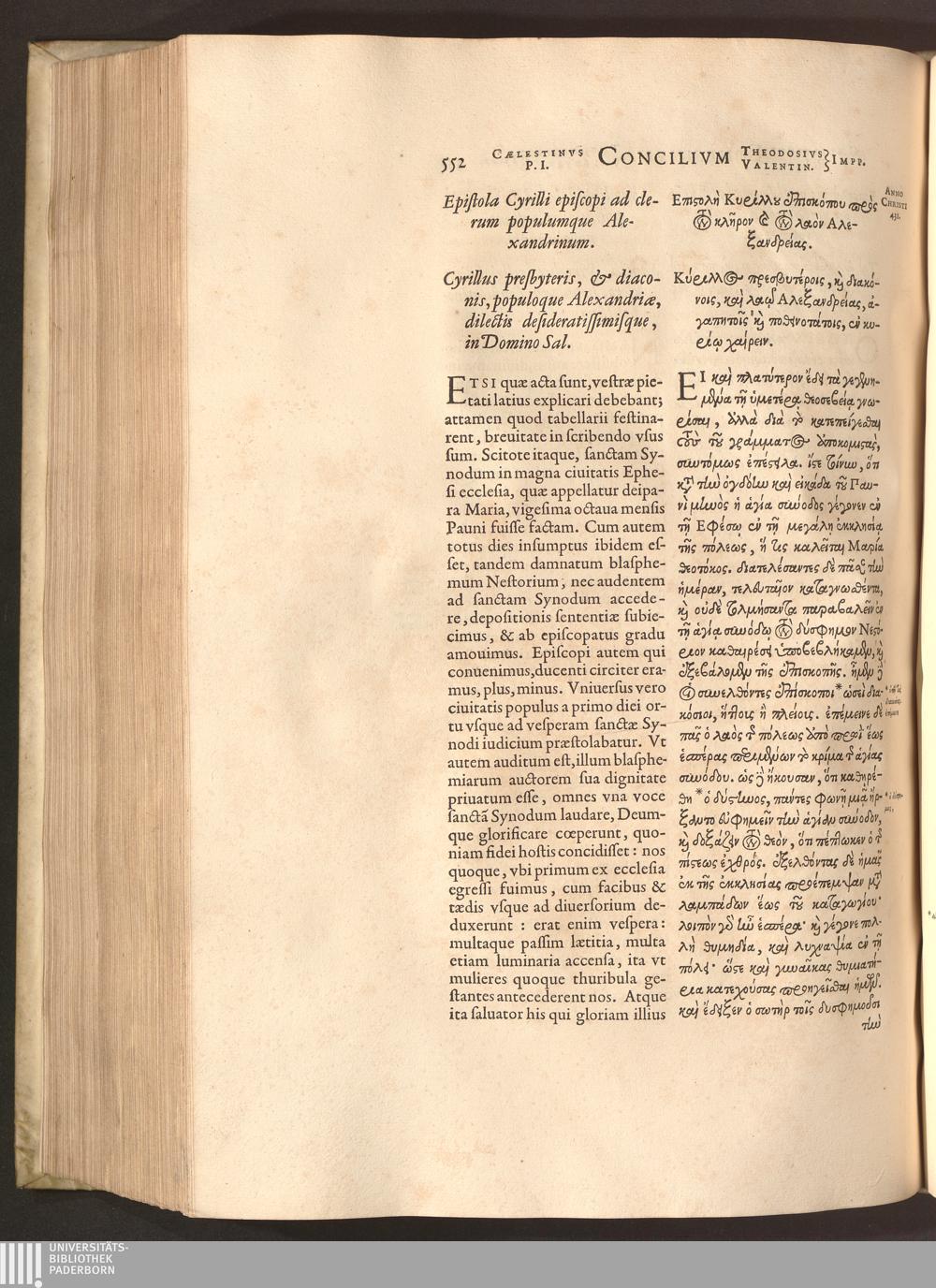 Epistola Cyrilli episcopi ad clerum populumque Alexandrinum.