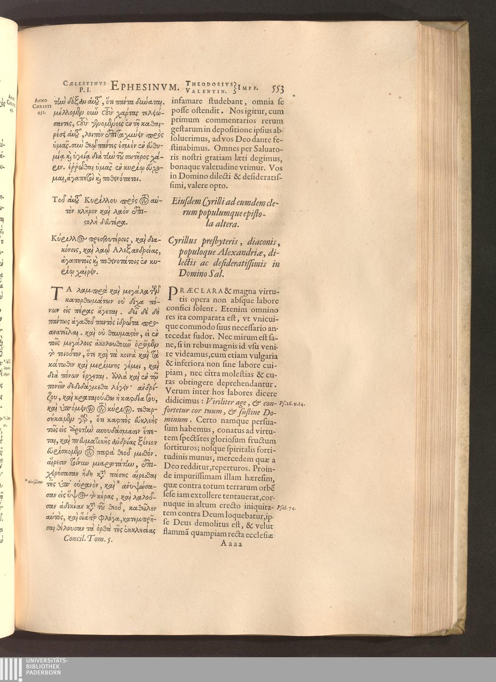 Tomvs Qvintvs (1644) Ephesini Concilii Generalis Pars I. Et II. Sub Cælestino papa I. anno CCCCXXXI.