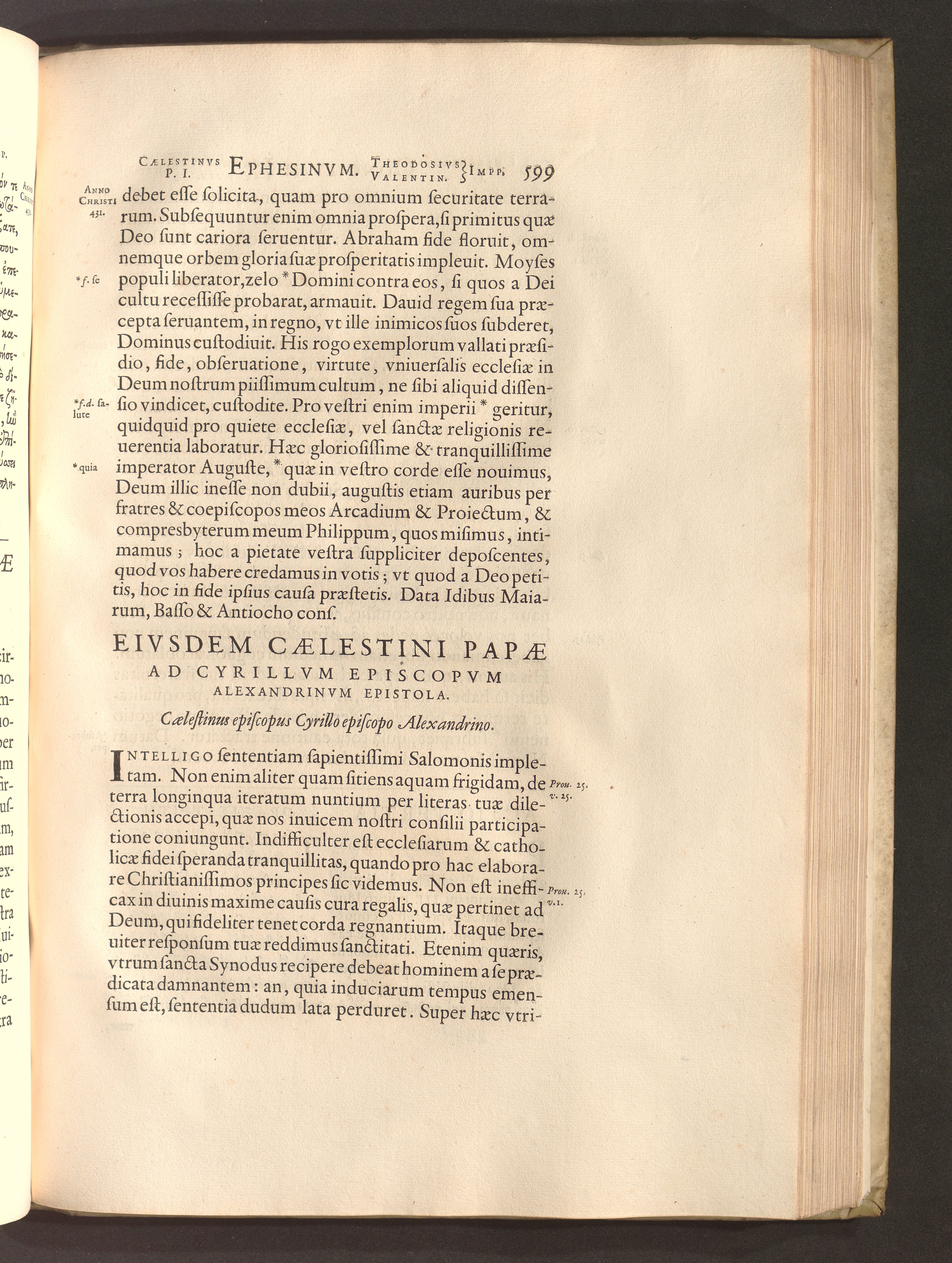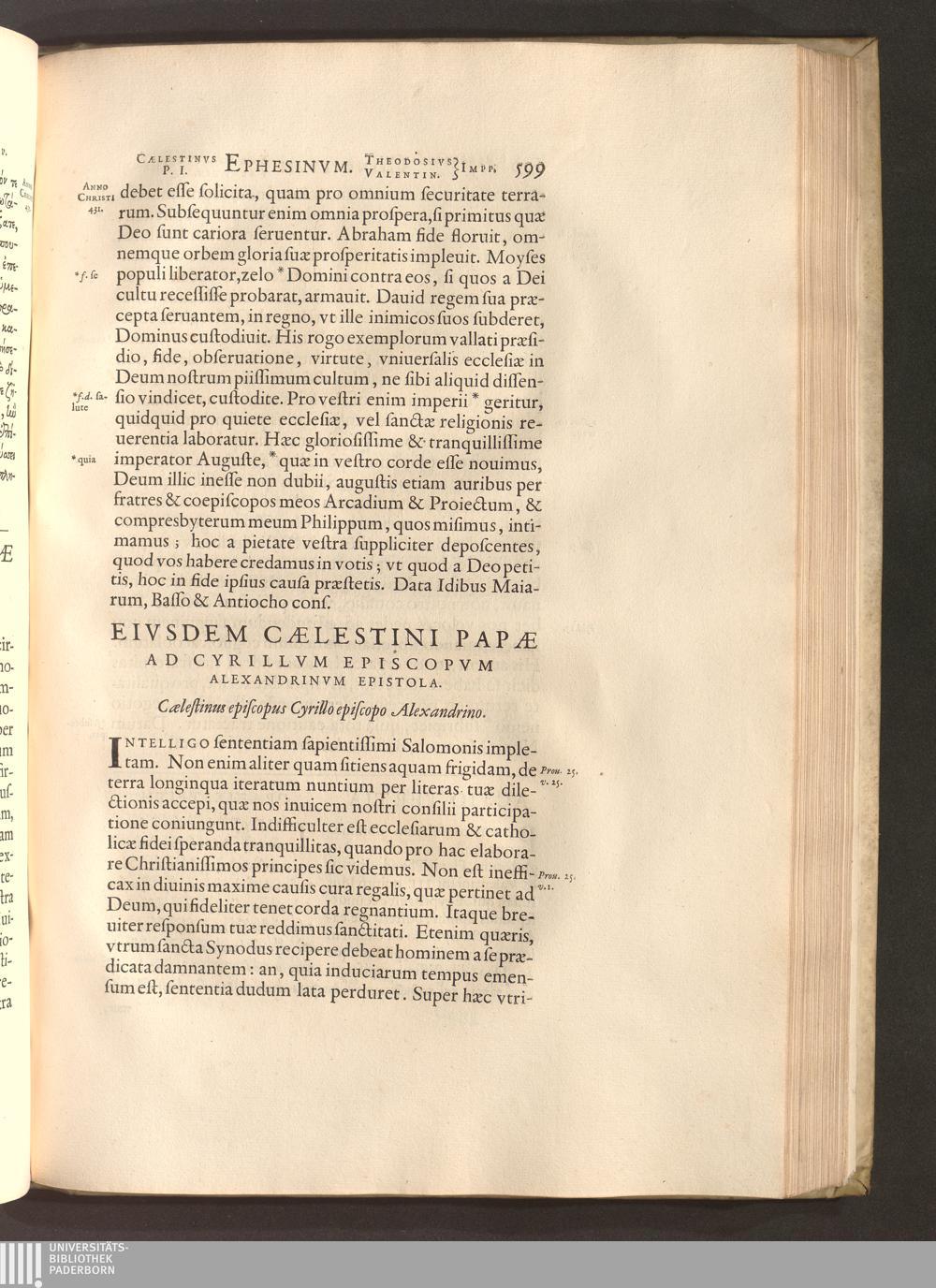 Eivsdem Caelestini Papae Ad Cyrillvm Episcopvm Alexandrinvm Epistola.