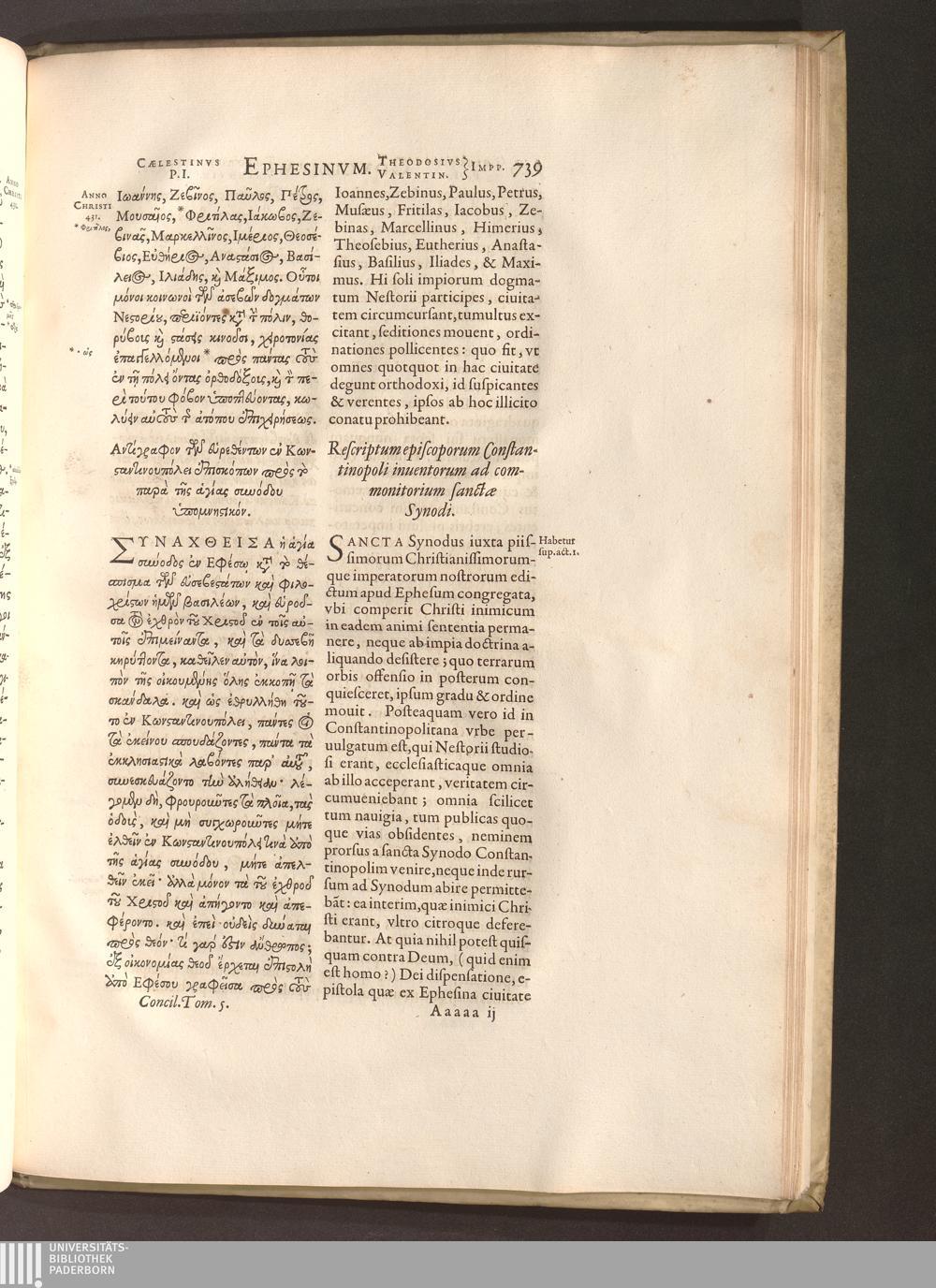 Tomvs Qvintvs (1644) Ephesini Concilii Generalis Pars I. Et II. Sub Cælestino papa I. anno CCCCXXXI.