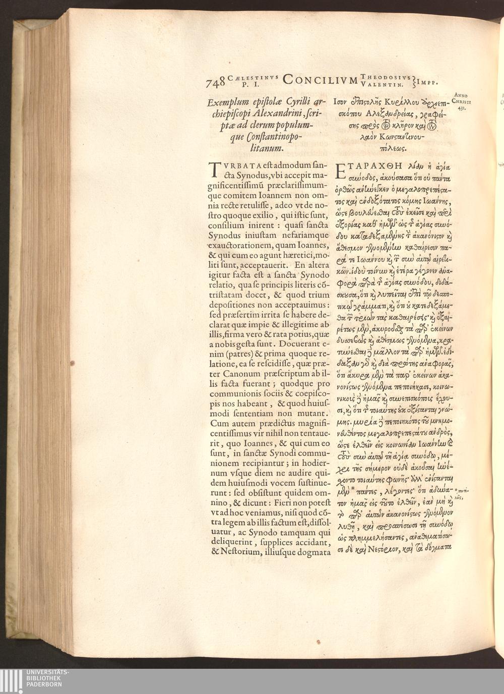 Exemplum epistolae Cyrilli archiepiscopi Alexandrini, scriptae ad clerum populumque[...]