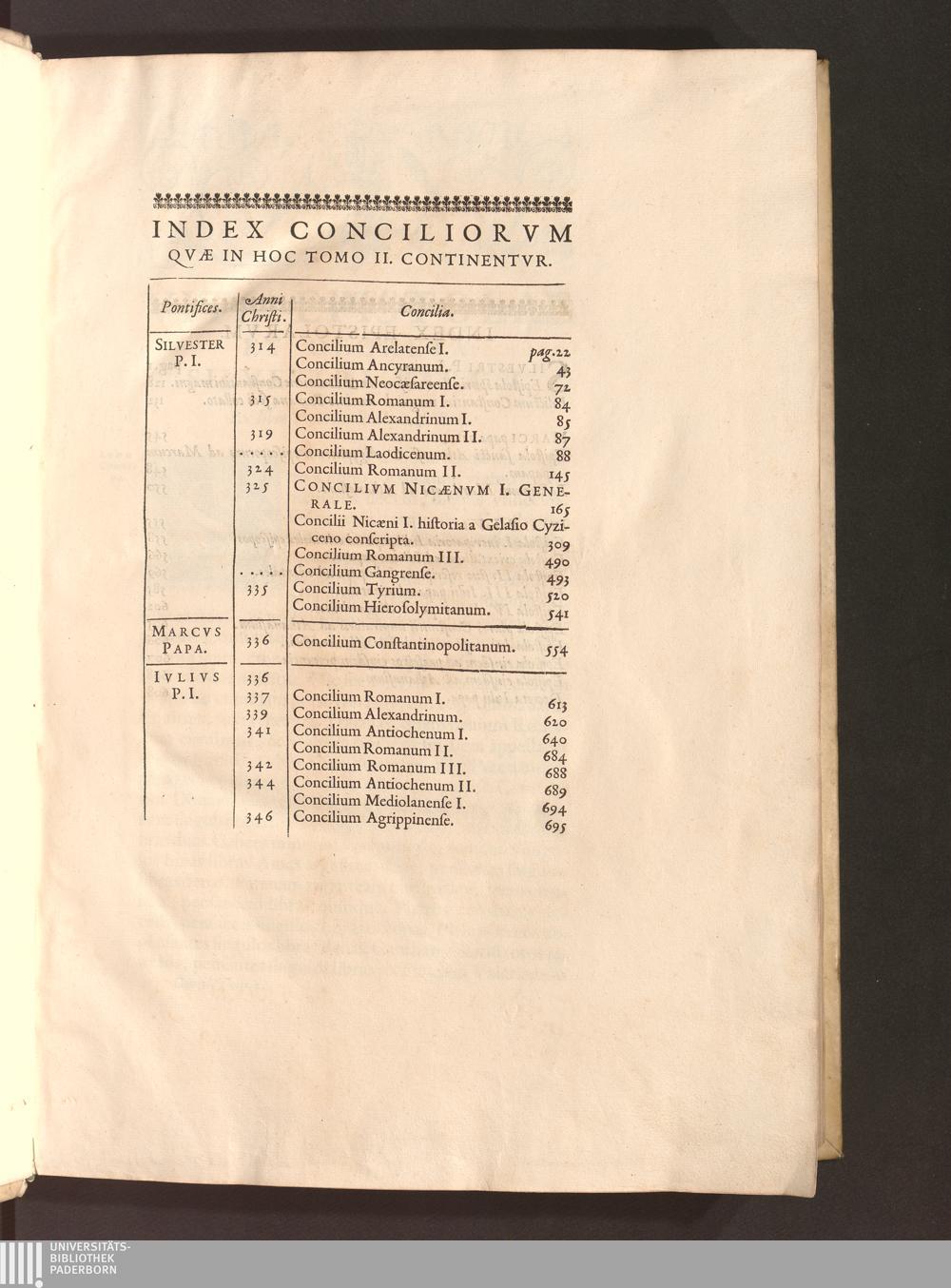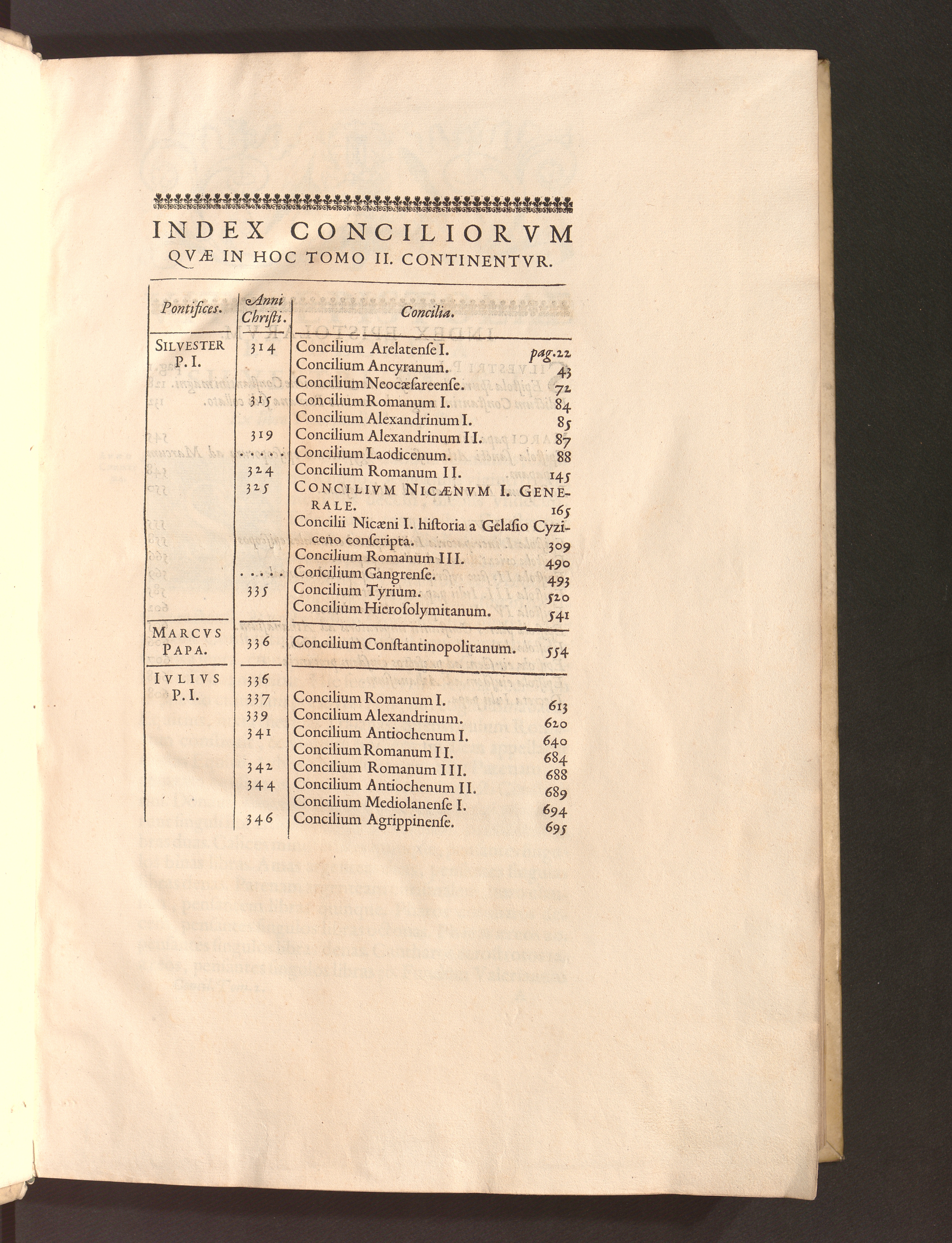 Index Conciliorvm Qvae In Hoc Tomo II. Continentvr.