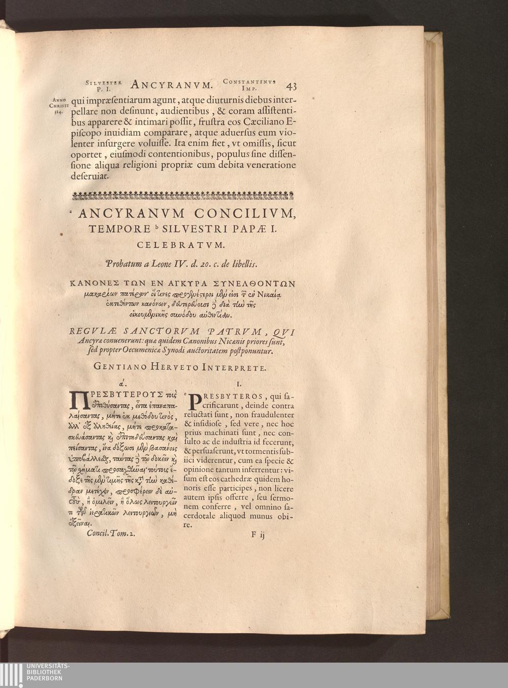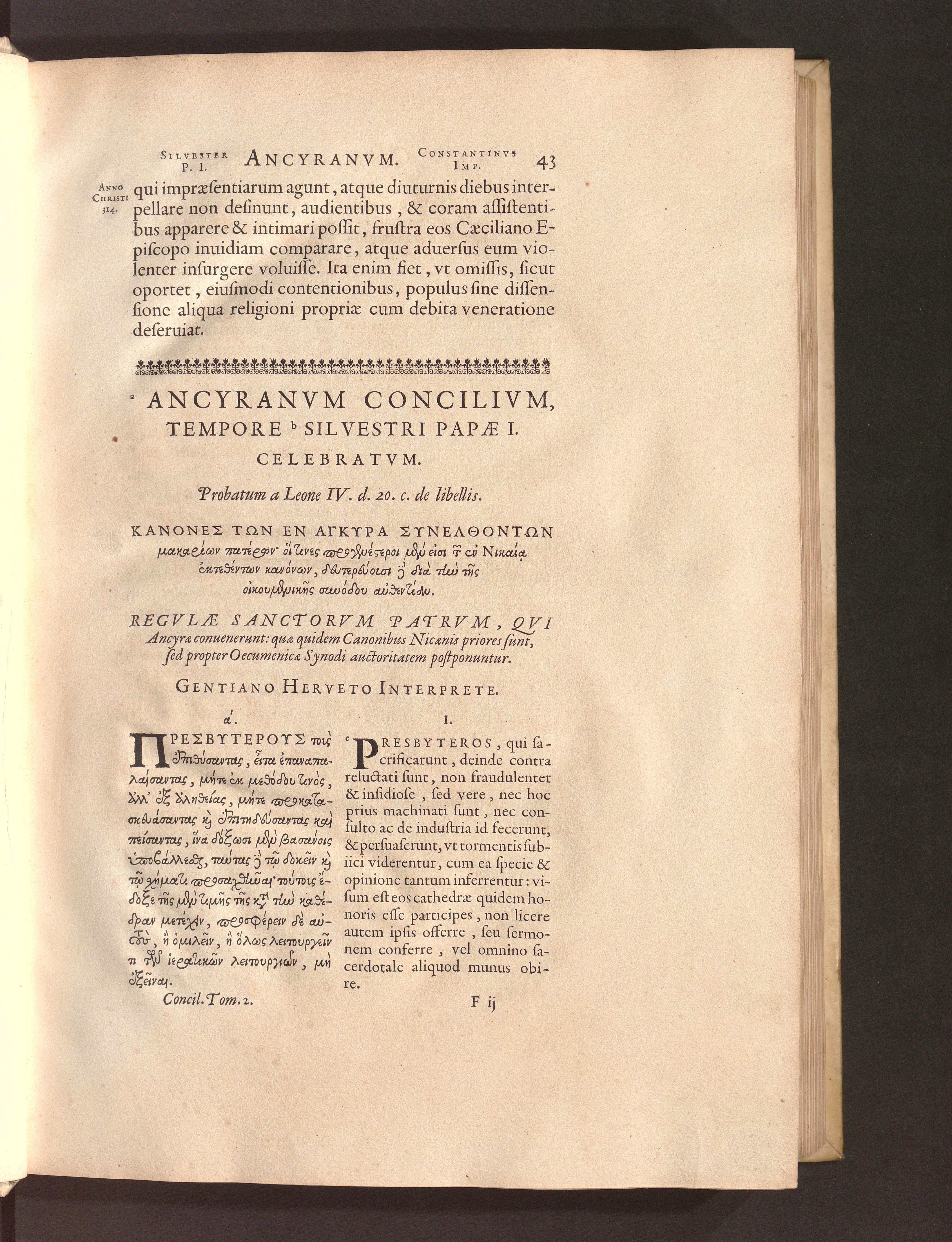 Ancyranvm Concilivm, Tempore Silvestri Papae I. Celebratvm.