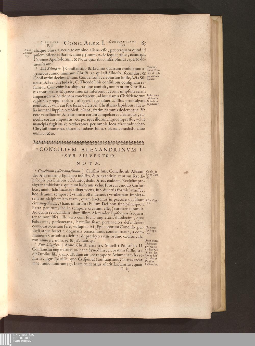 Concilivm Alexandrinvm I. Svb Silvetsro.