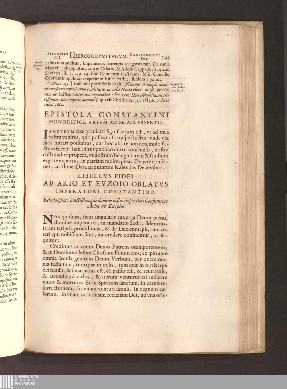 Libellvs Fidei Ab Ario Et Evzoio Oblatvs Imperatori Constantino.