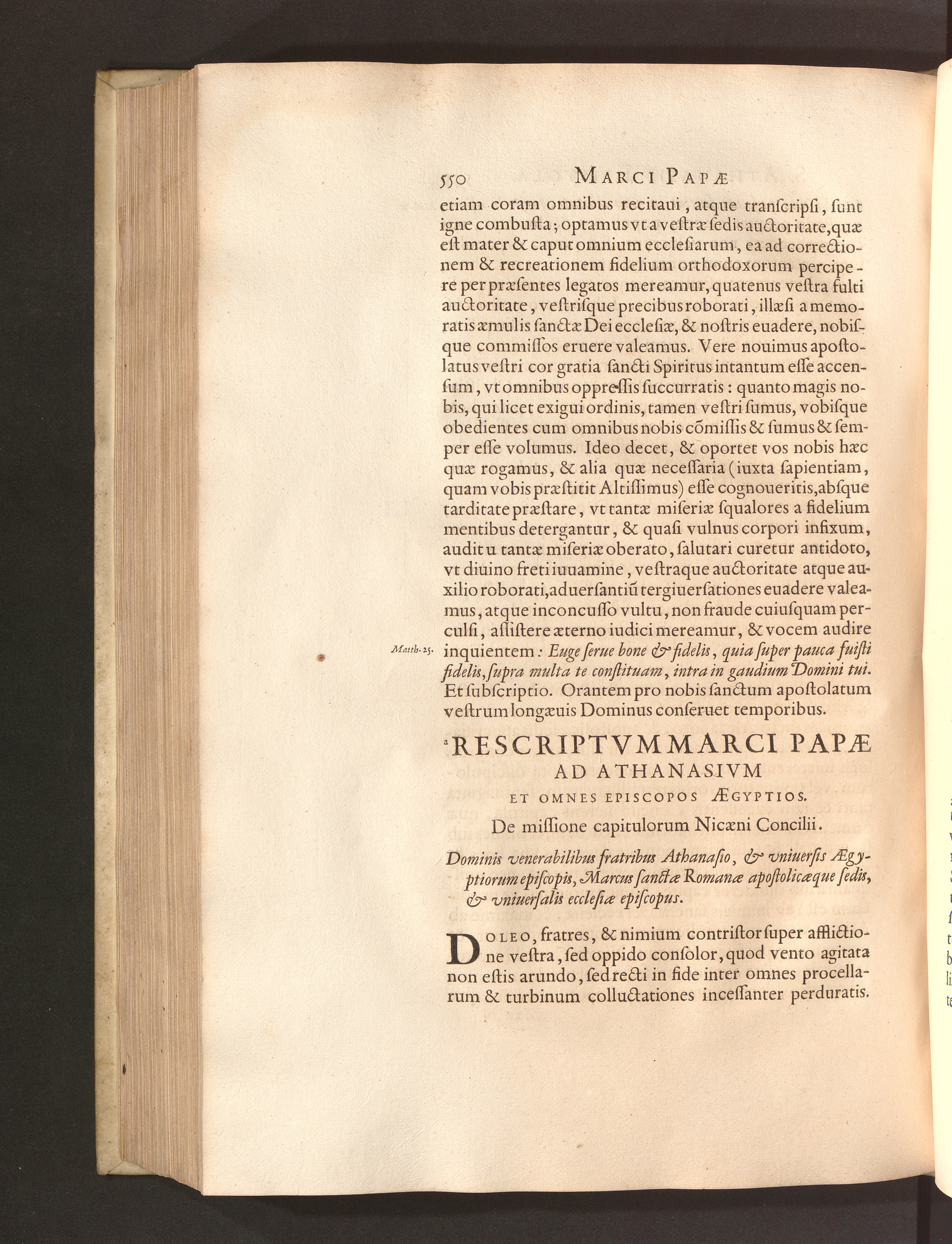 Rescriptvm Marci Papae Ad Athanasivm Et Omnes Episcopos Aegyptios. De missione capitulorum[...]
