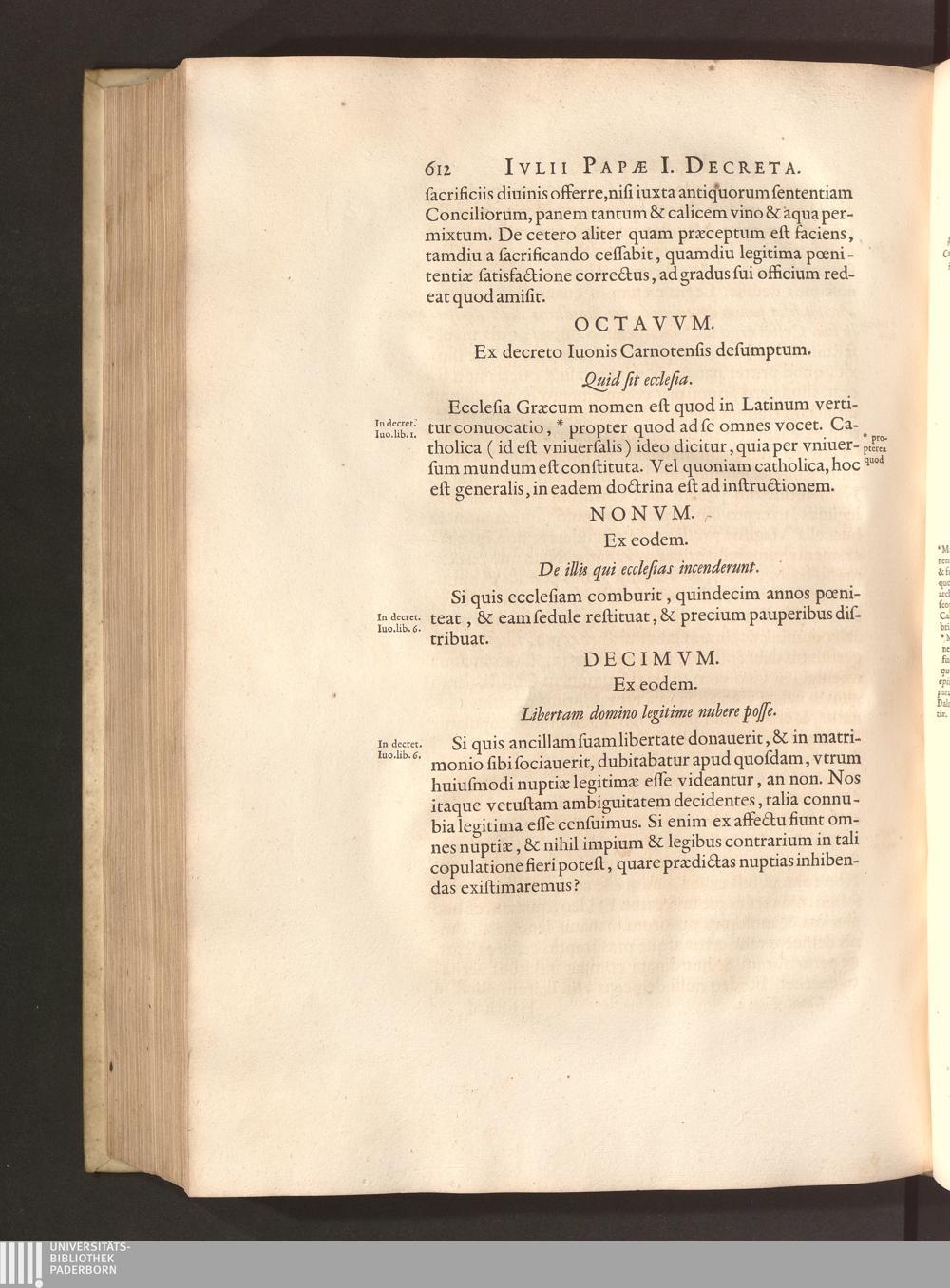 Decreta Ivlii Papae I. Decem Ivxta Gratianvm Et Ivonem.