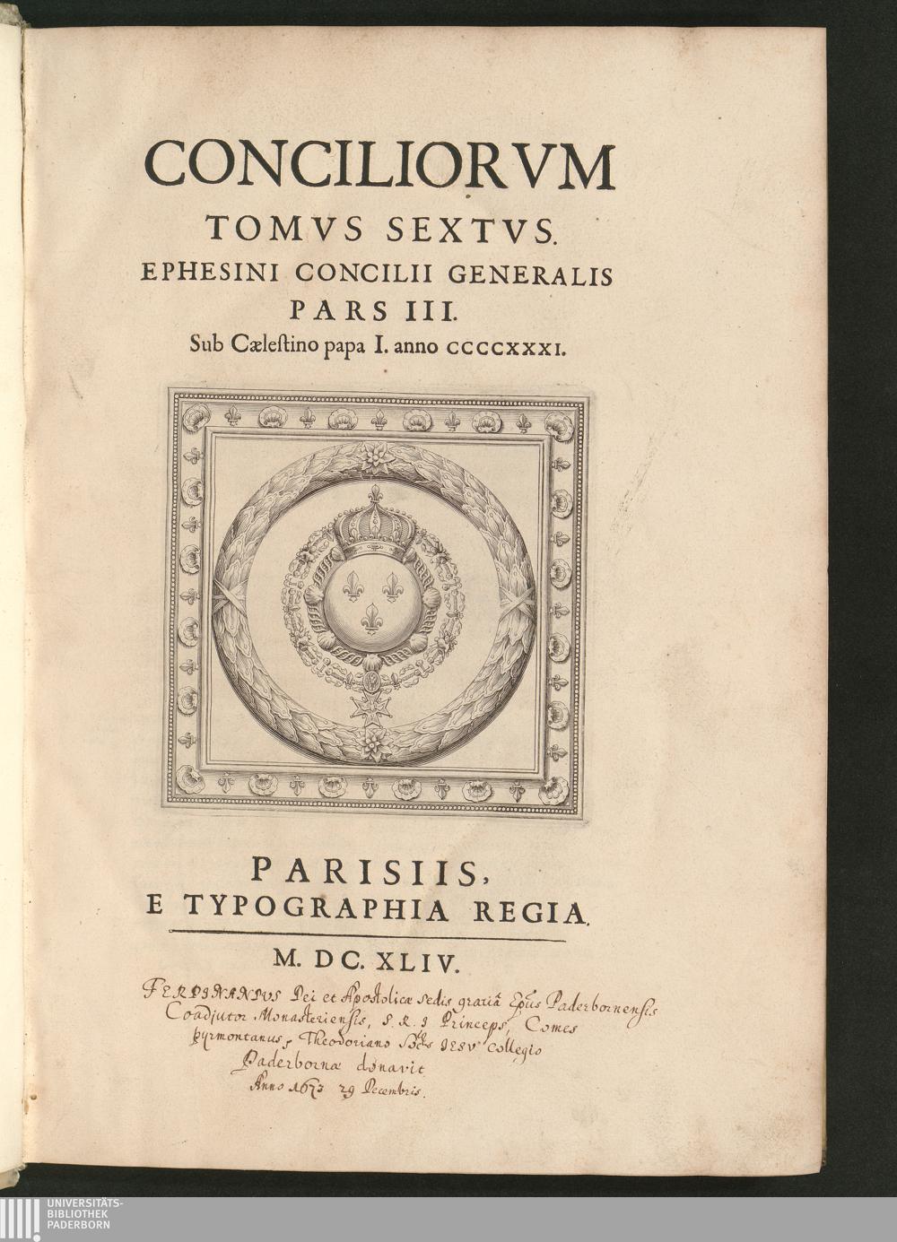 Tomvs Sextvs (1644) Ephesini Concilii Generalis Pars III. Sub Cælestino papa I. anno CCCCXXXI.