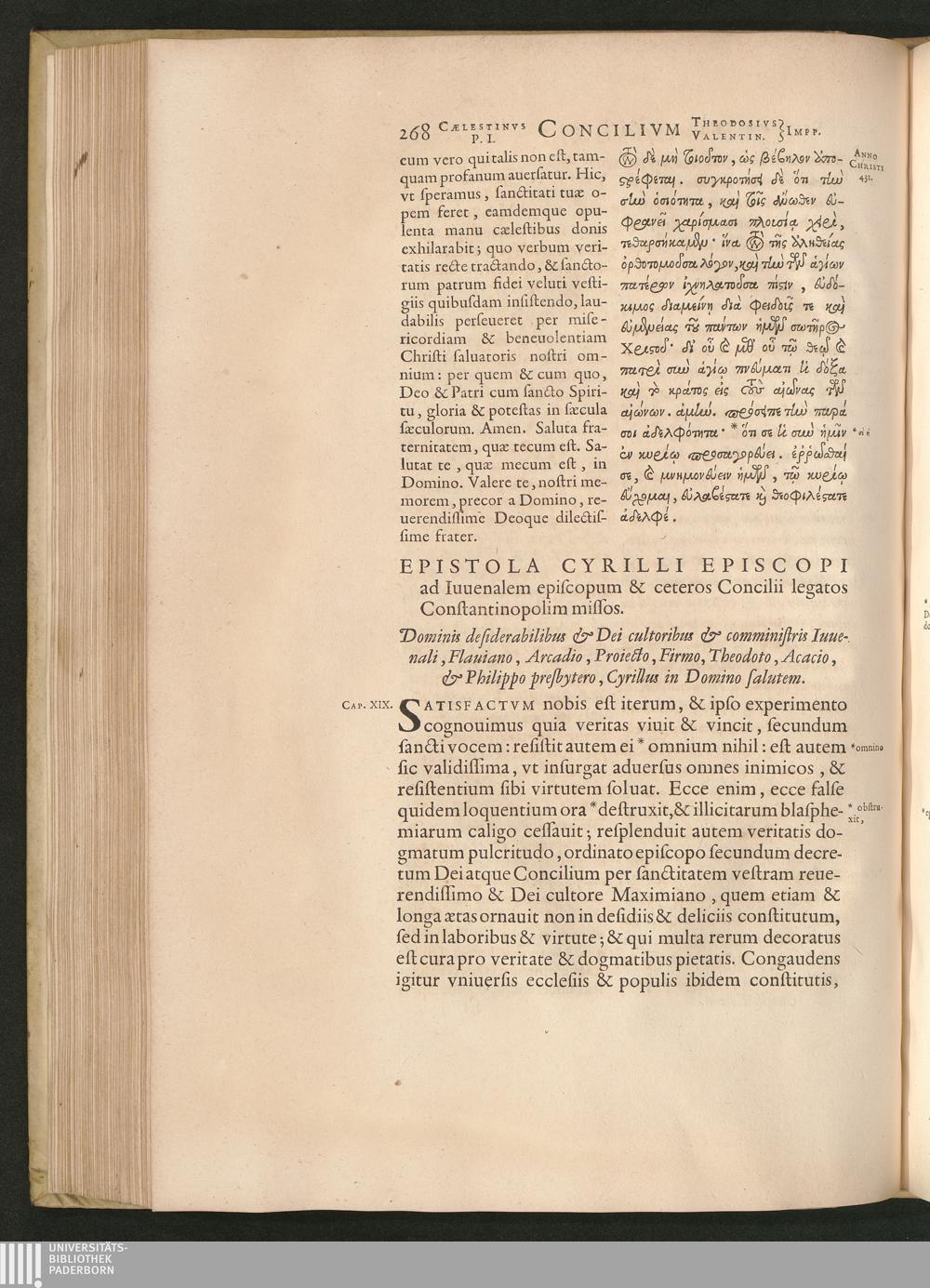Epistola Cyrilli Episcopi ad Iuuenalem episcopum & ceteros Concilii legatos Constantinopolim[...]