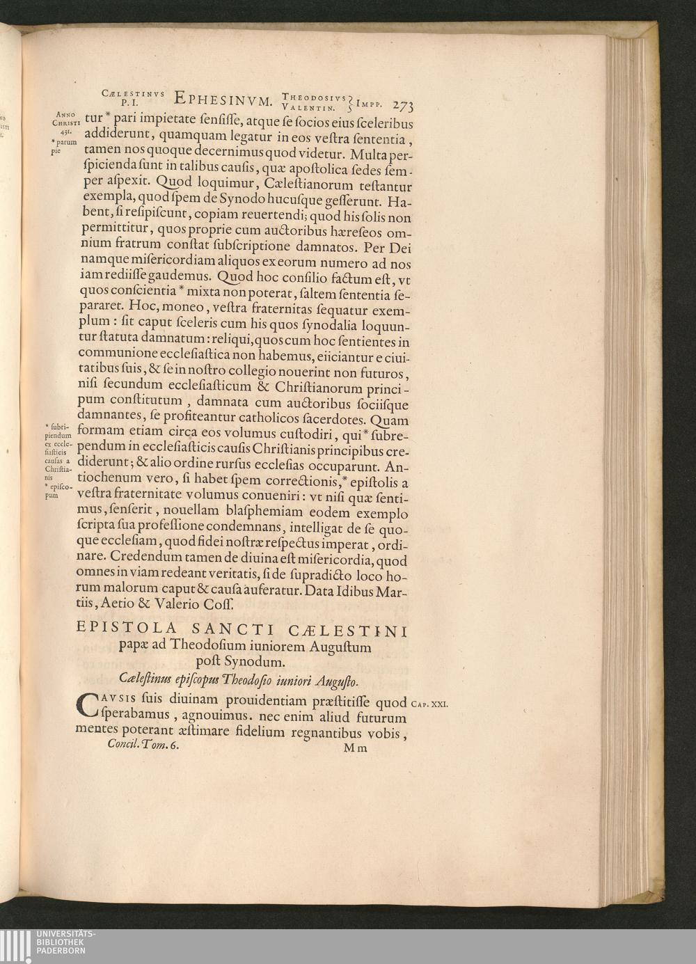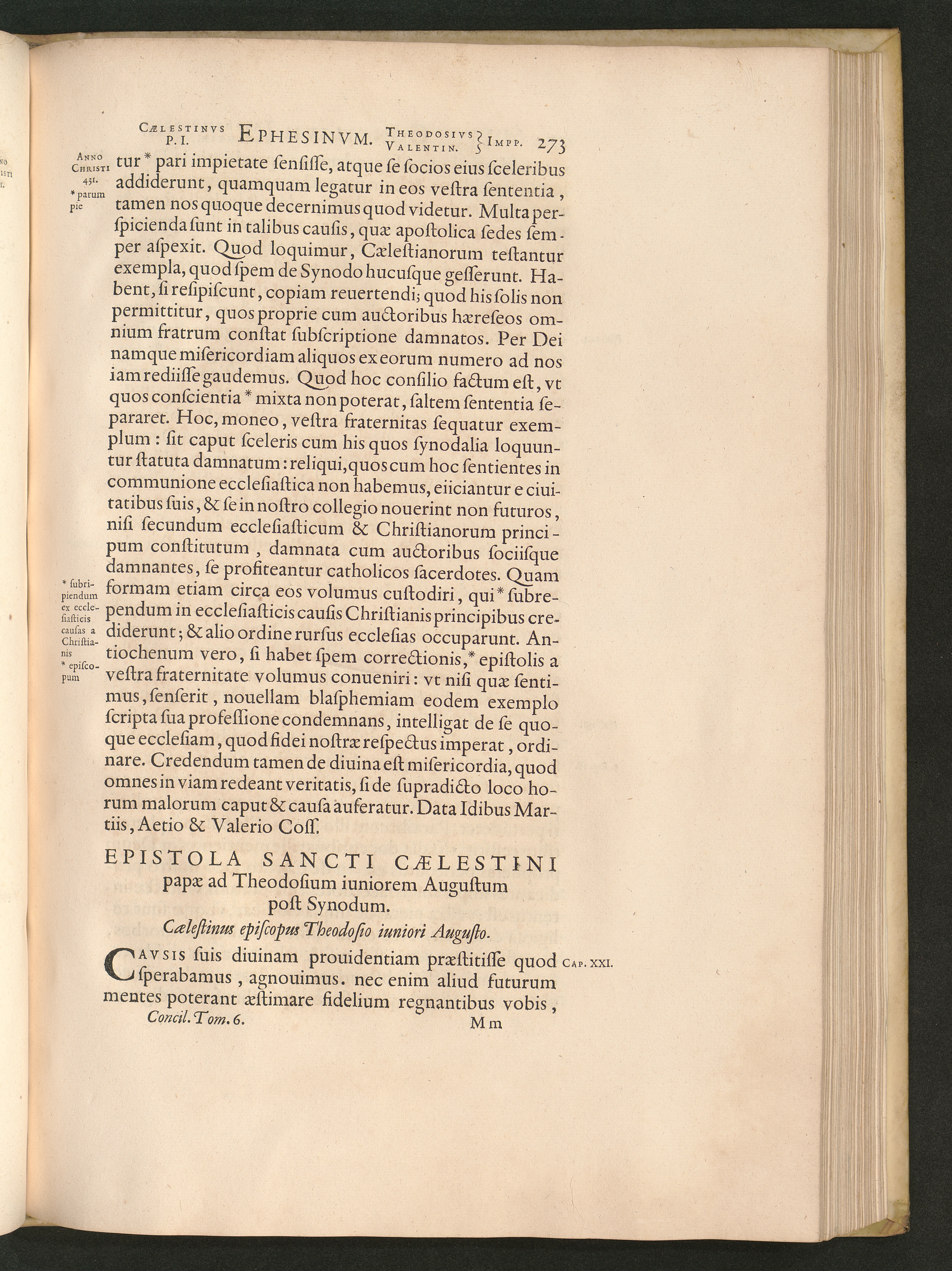 Epistola Sancti Caelestini papae ad Theodosium iuniorem Augustum post Synodum.