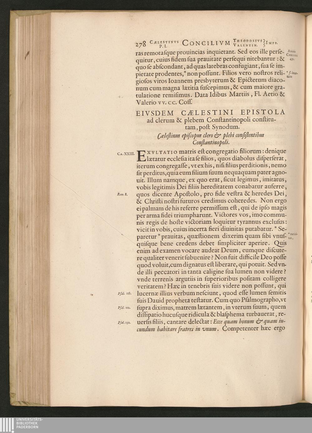 Eivsdem Caelestini Episctola ad clerum & plebem Constantinopoli constitutam, post[...]
