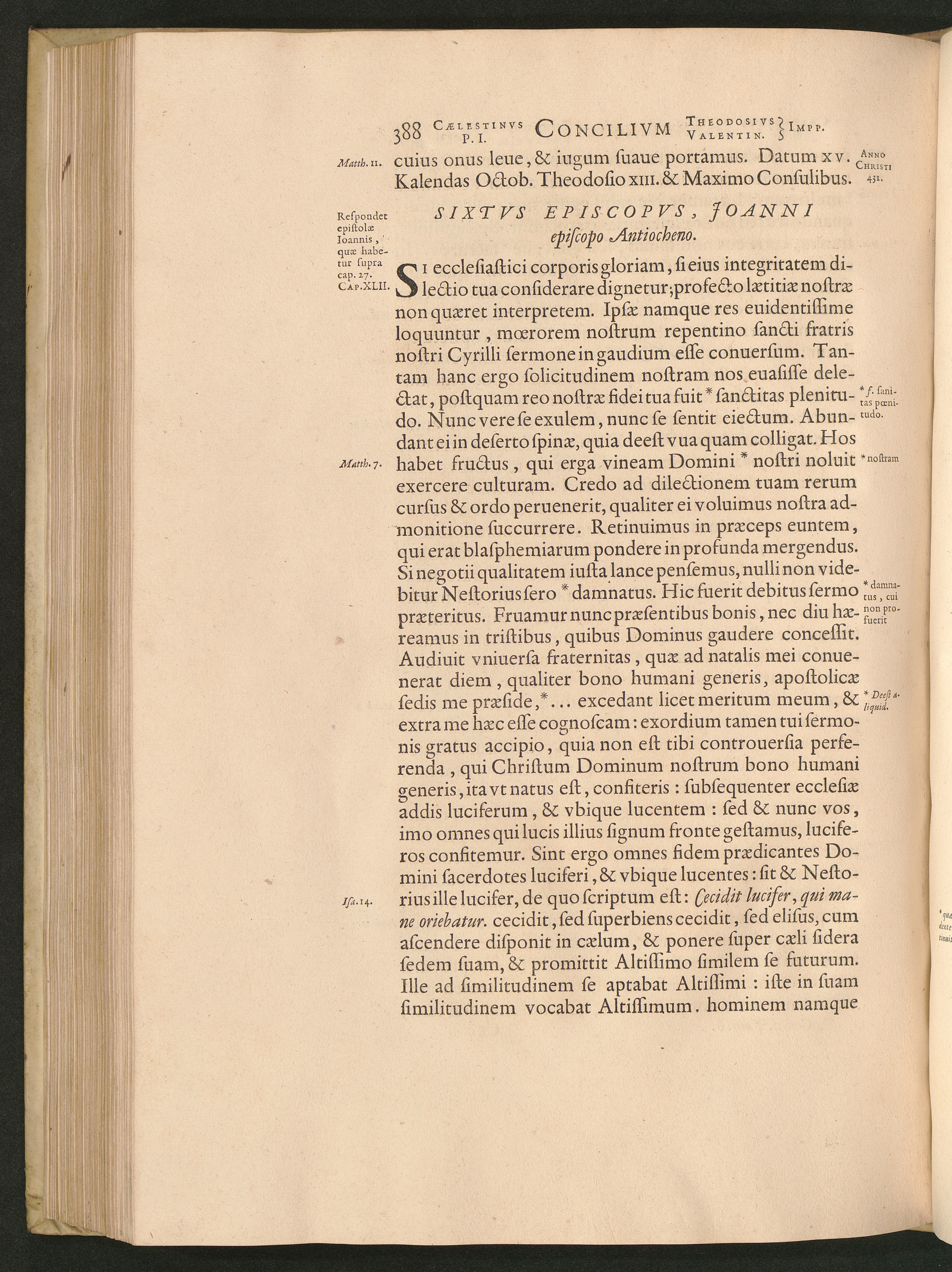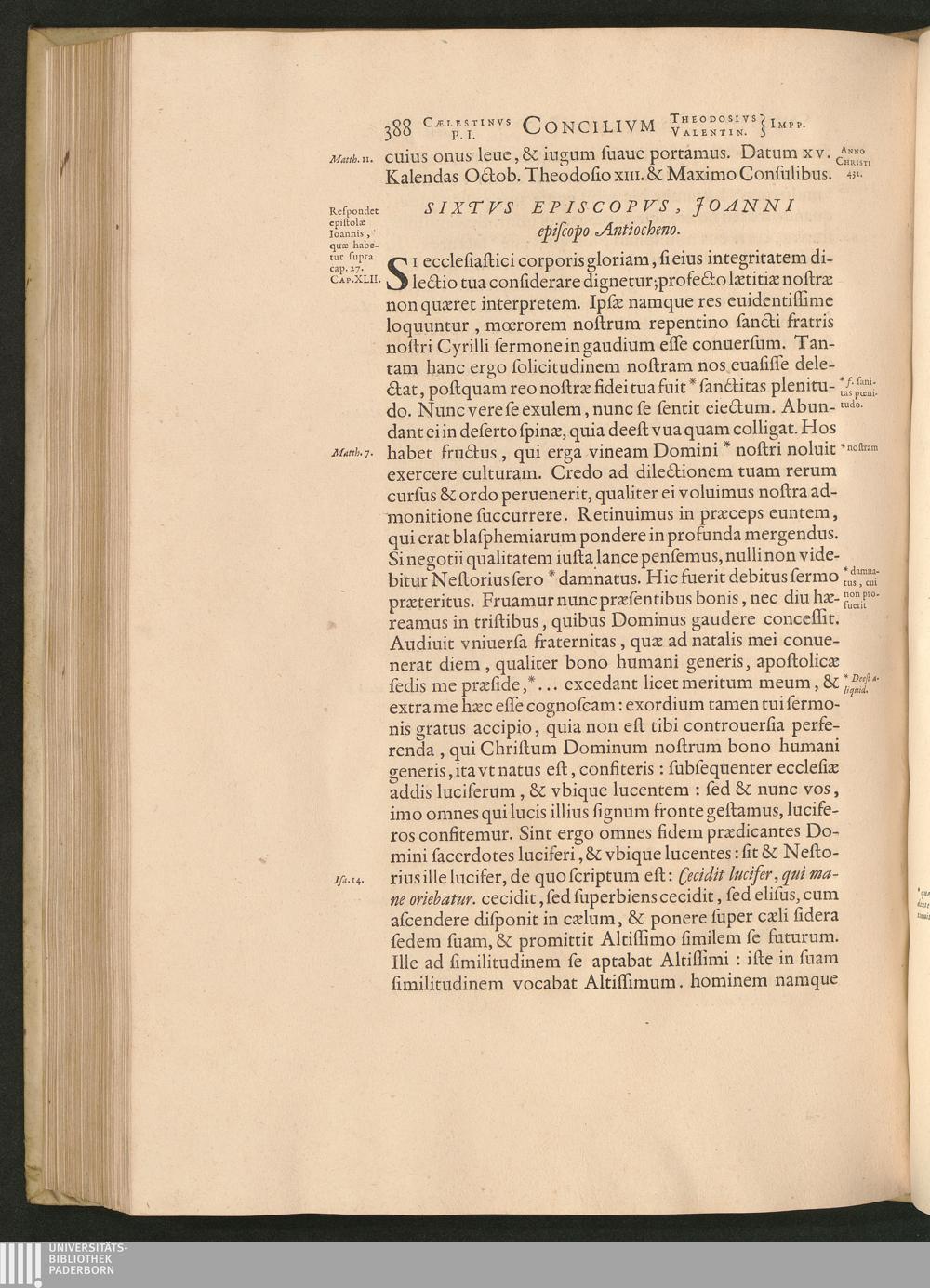 Sixtvs Episcopvs, Joanni episcopo Antiocheno.