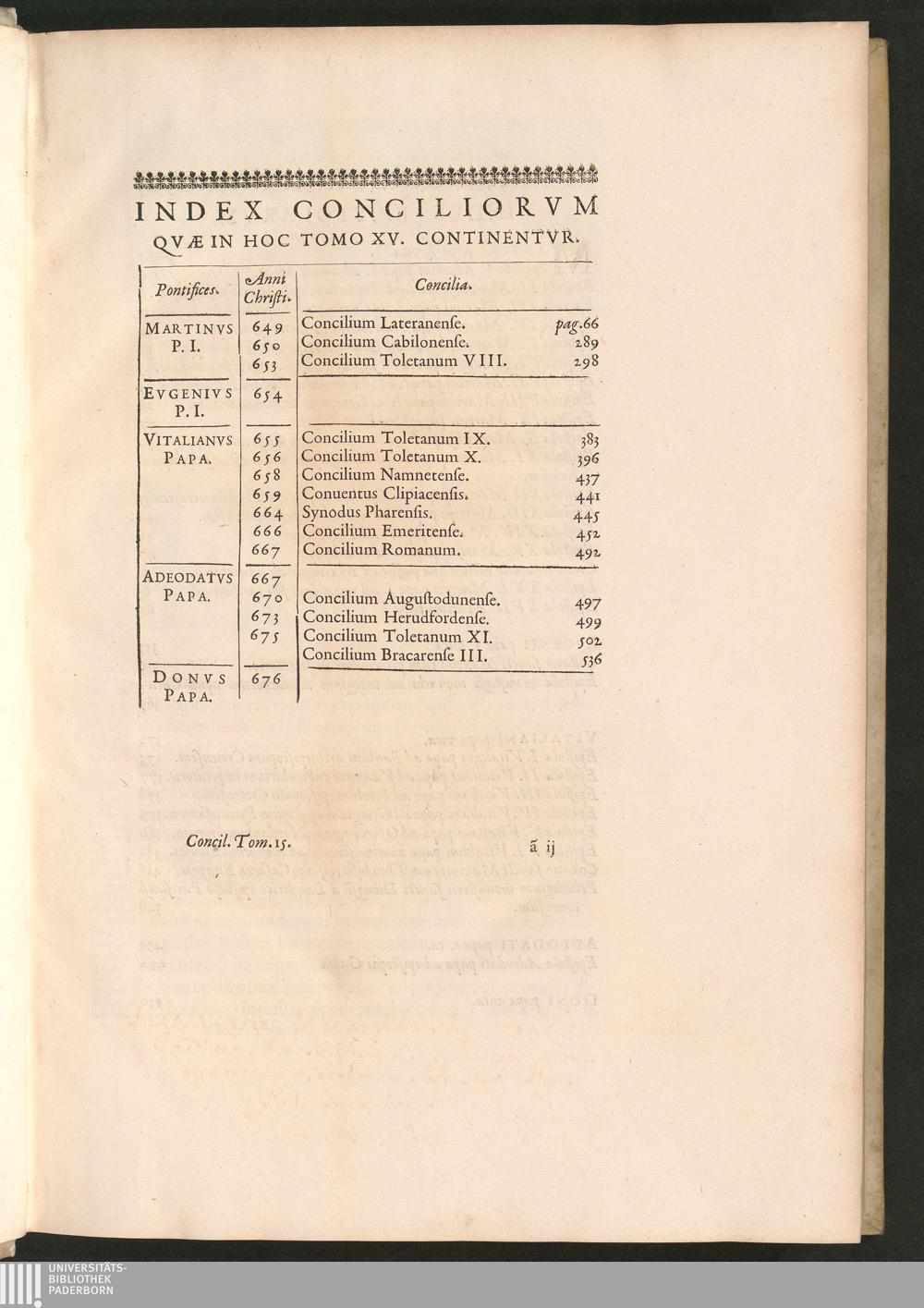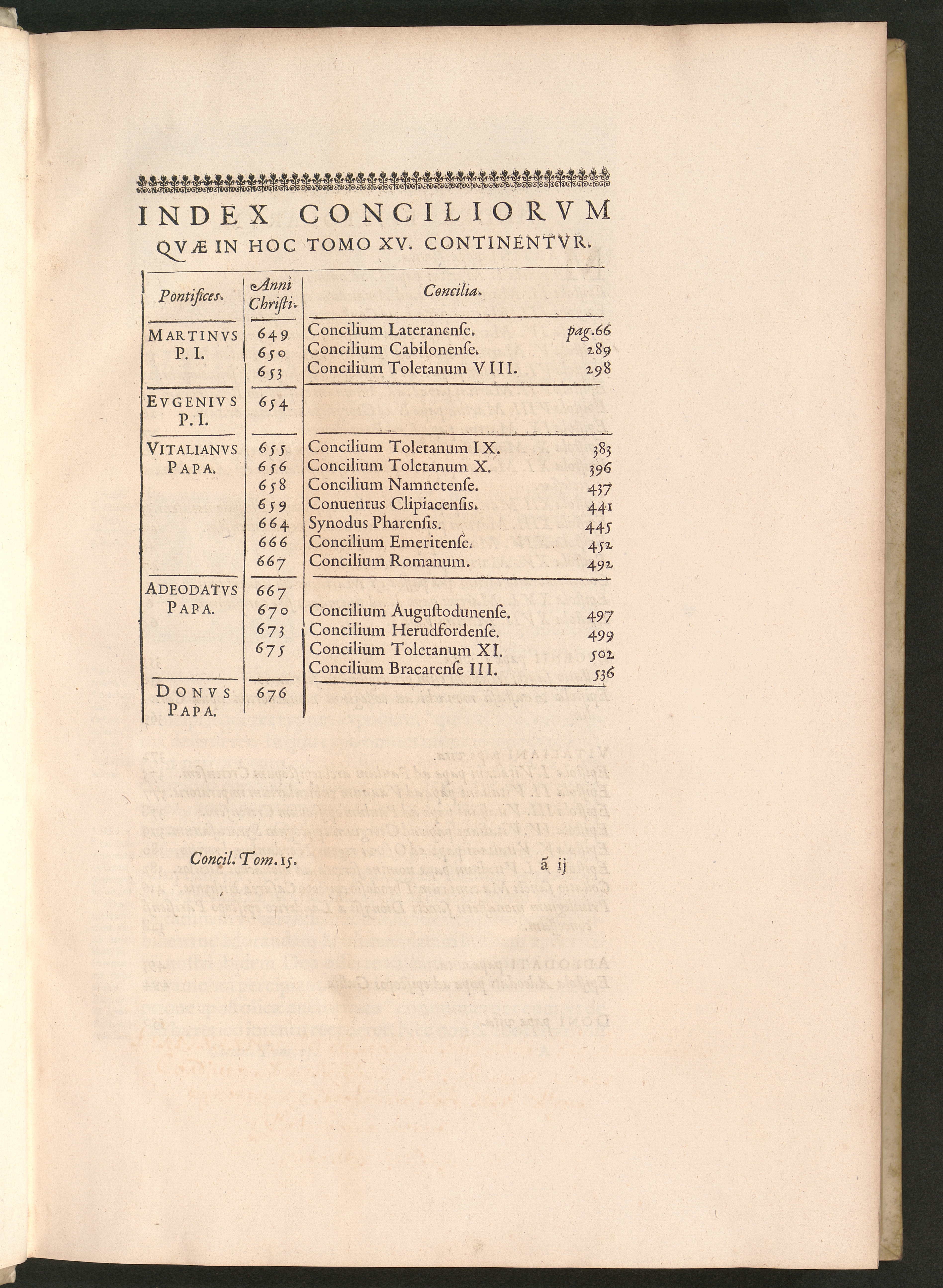 Index Conciliorvm Qvae In Hoc Tomo XV. Continentvr.