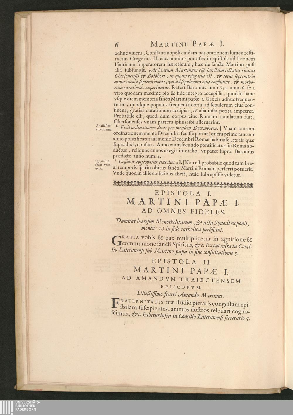 Vita, Epistolae Et Decreta Martini Papae I.