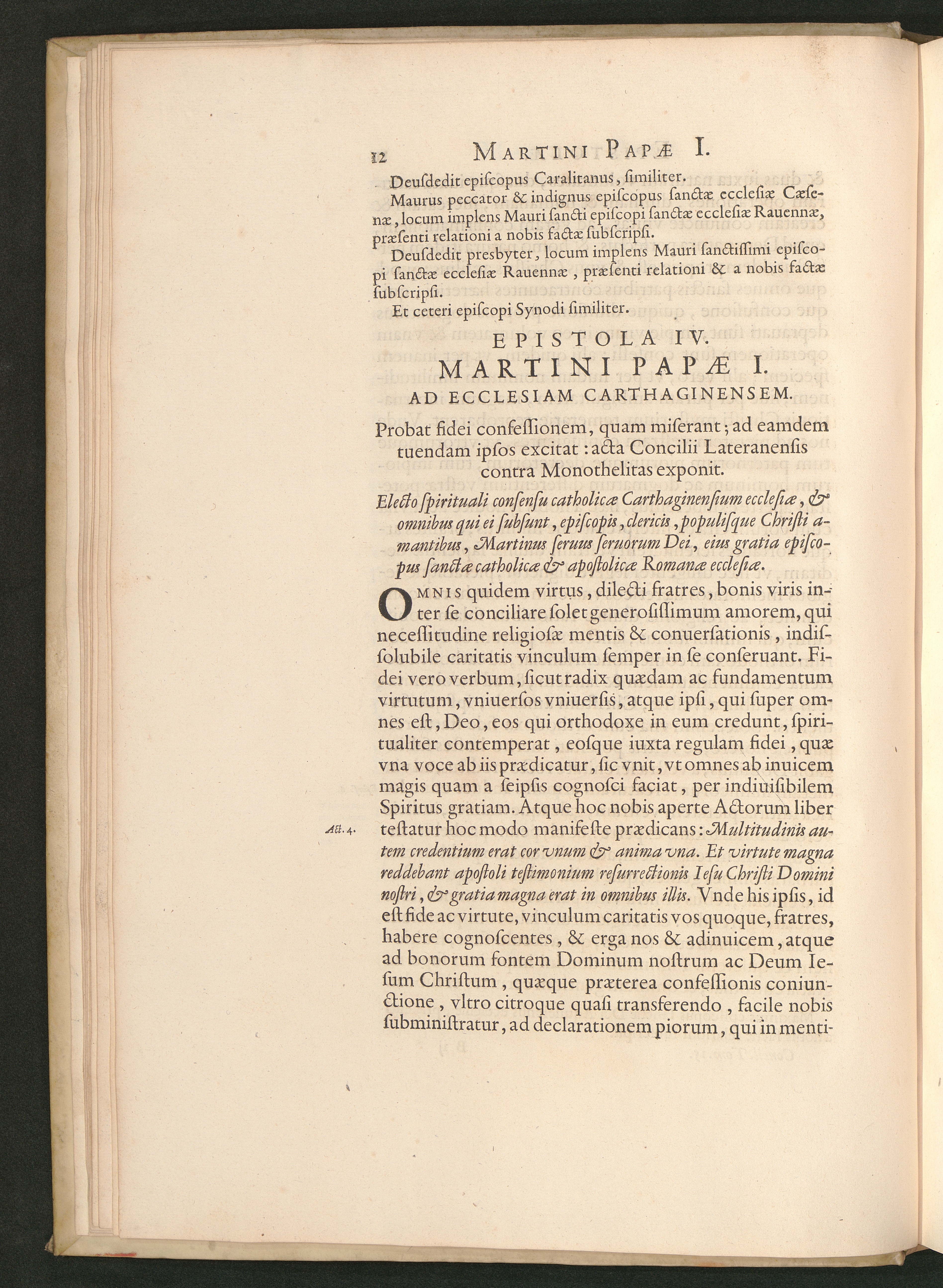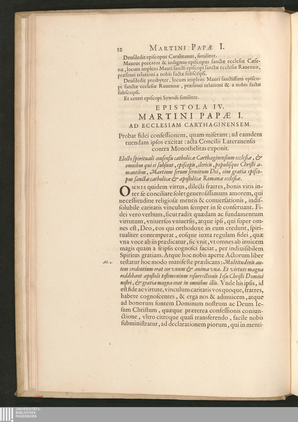 Epistola IV. Martini Papae I. Ad Ecclesiam Carthaginensem. Probat fidei confessionem,[...]