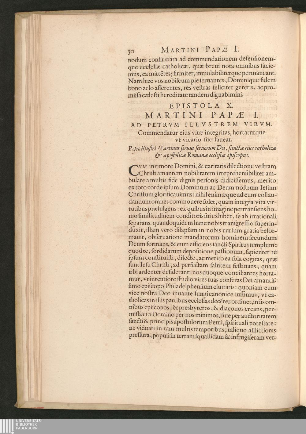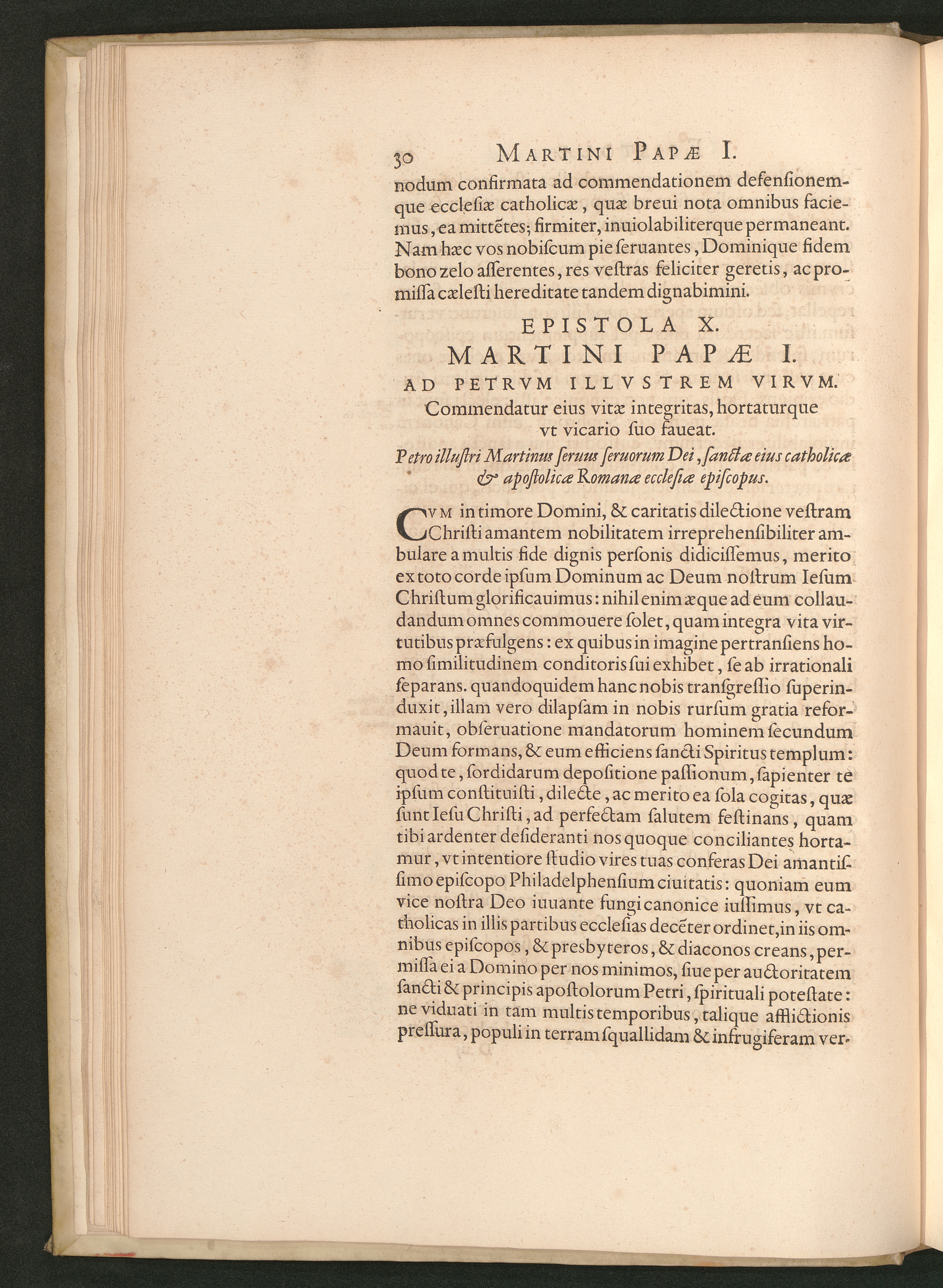 Epistola X. Martini Papae I. Ad Petrvm Illvstrem Virvm. Commendatur eius vitae integritas,[...]
