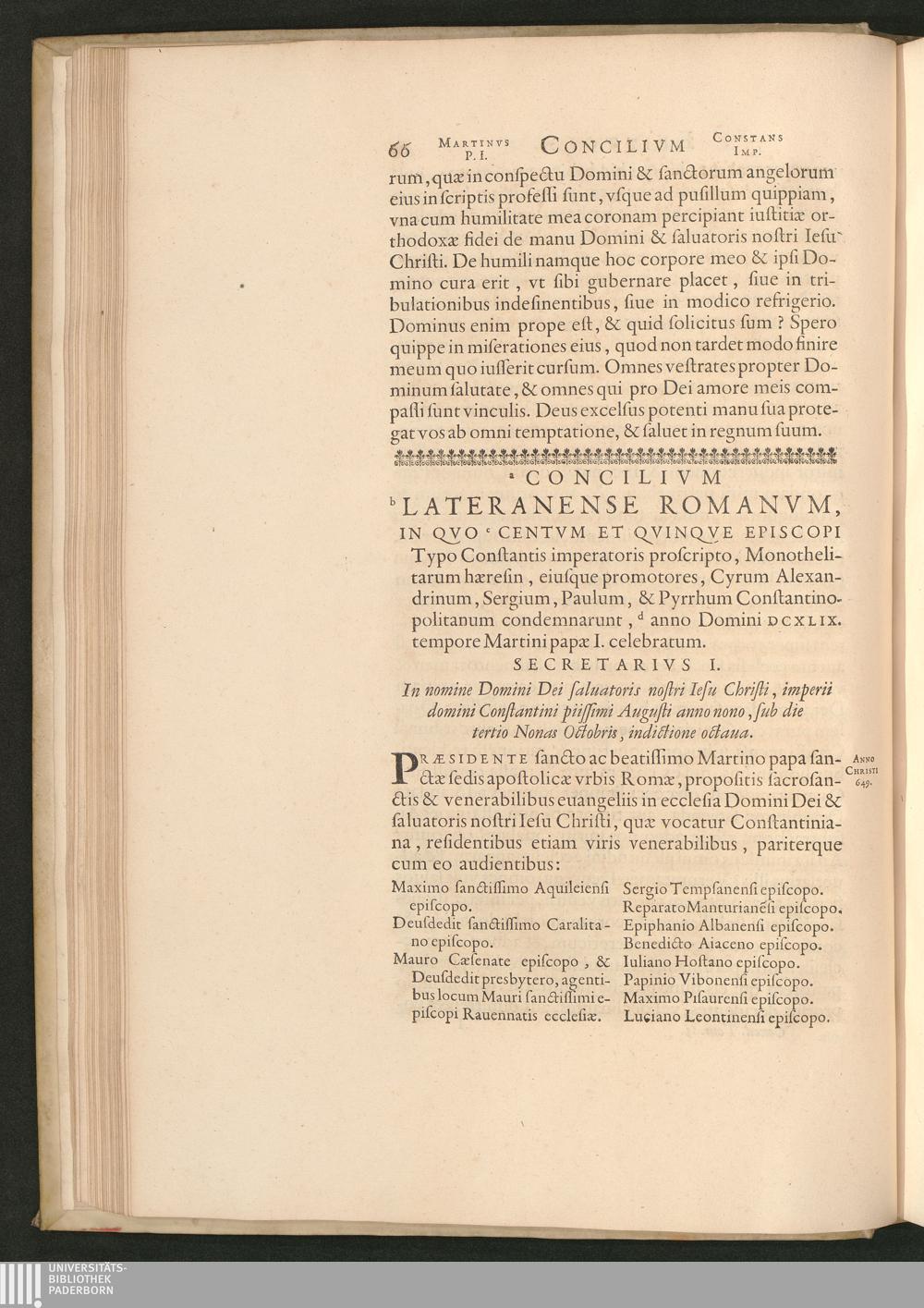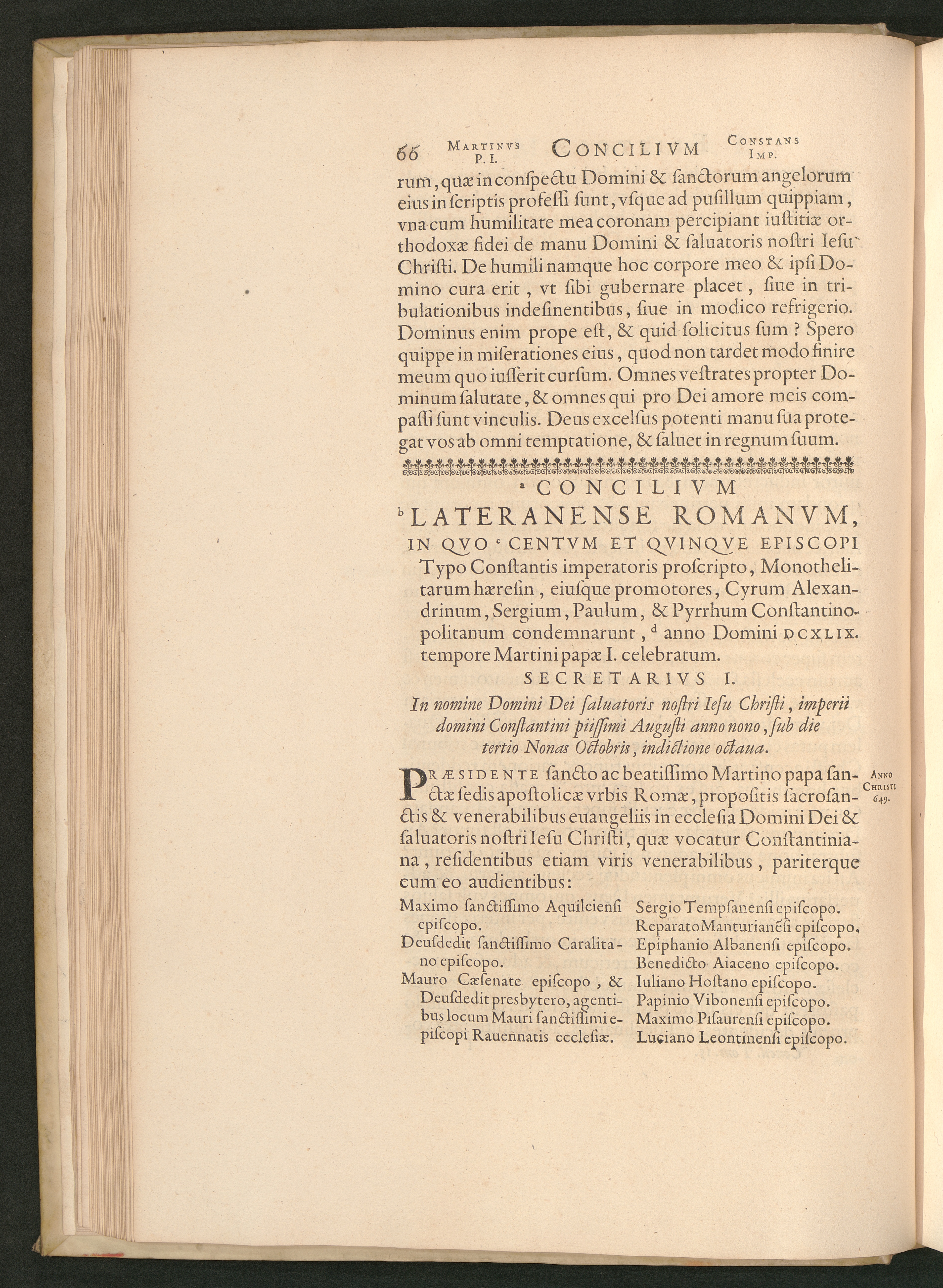 Concilivm Lateranense Romanvm, In Qvo Centvm Et Qvinqve Epsicopi Typo Constantis[...]