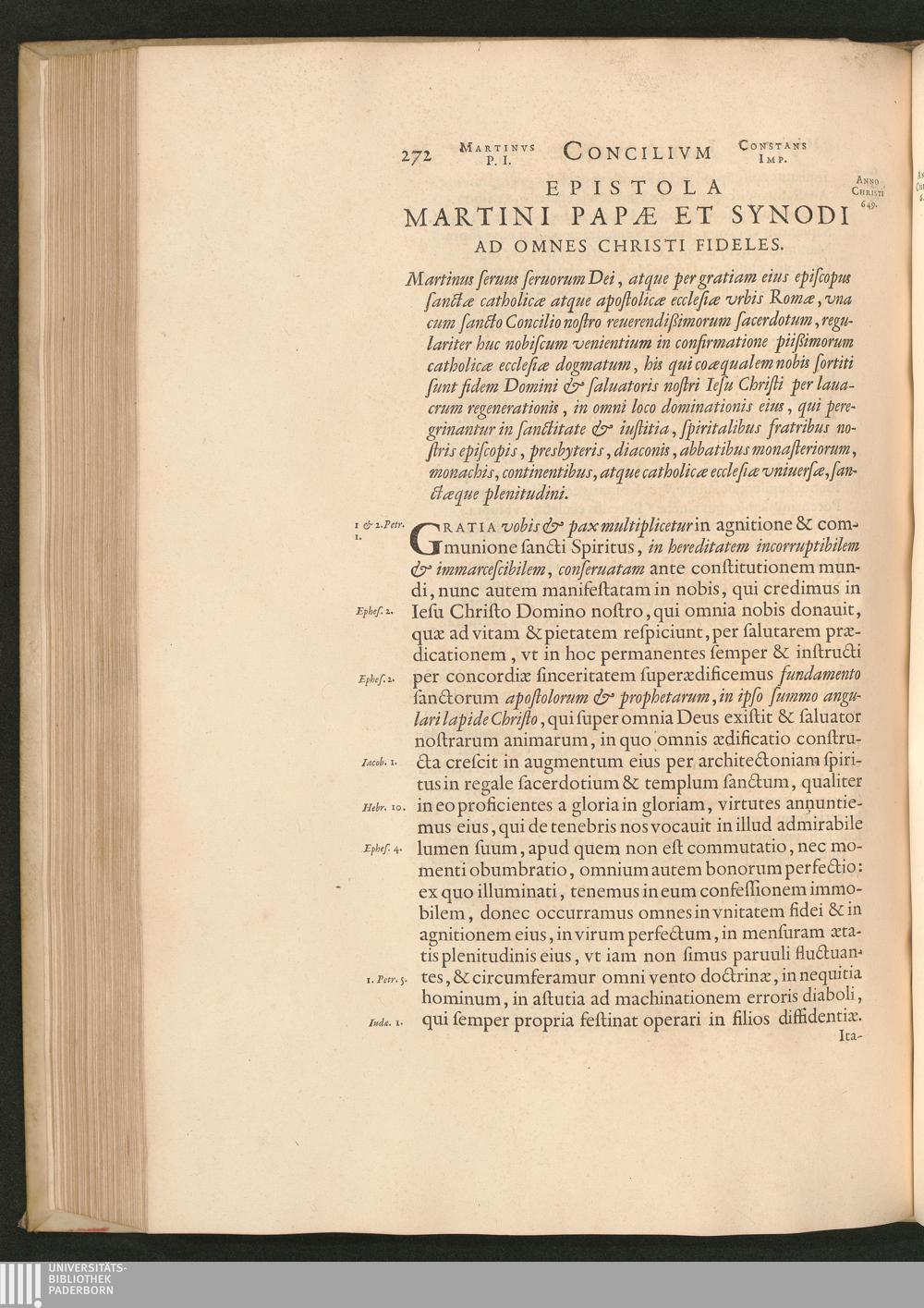 Epistola Martini Papae Et Synodi Ad Omnes Christi Fideles.