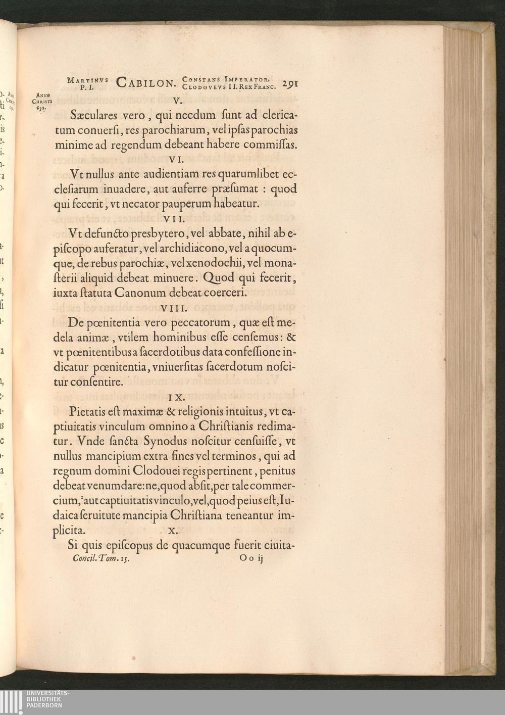 Concilivm Cabilonense, Clodovei II. Regis Evocatione VIII. Kalendas Nouembres in[...]