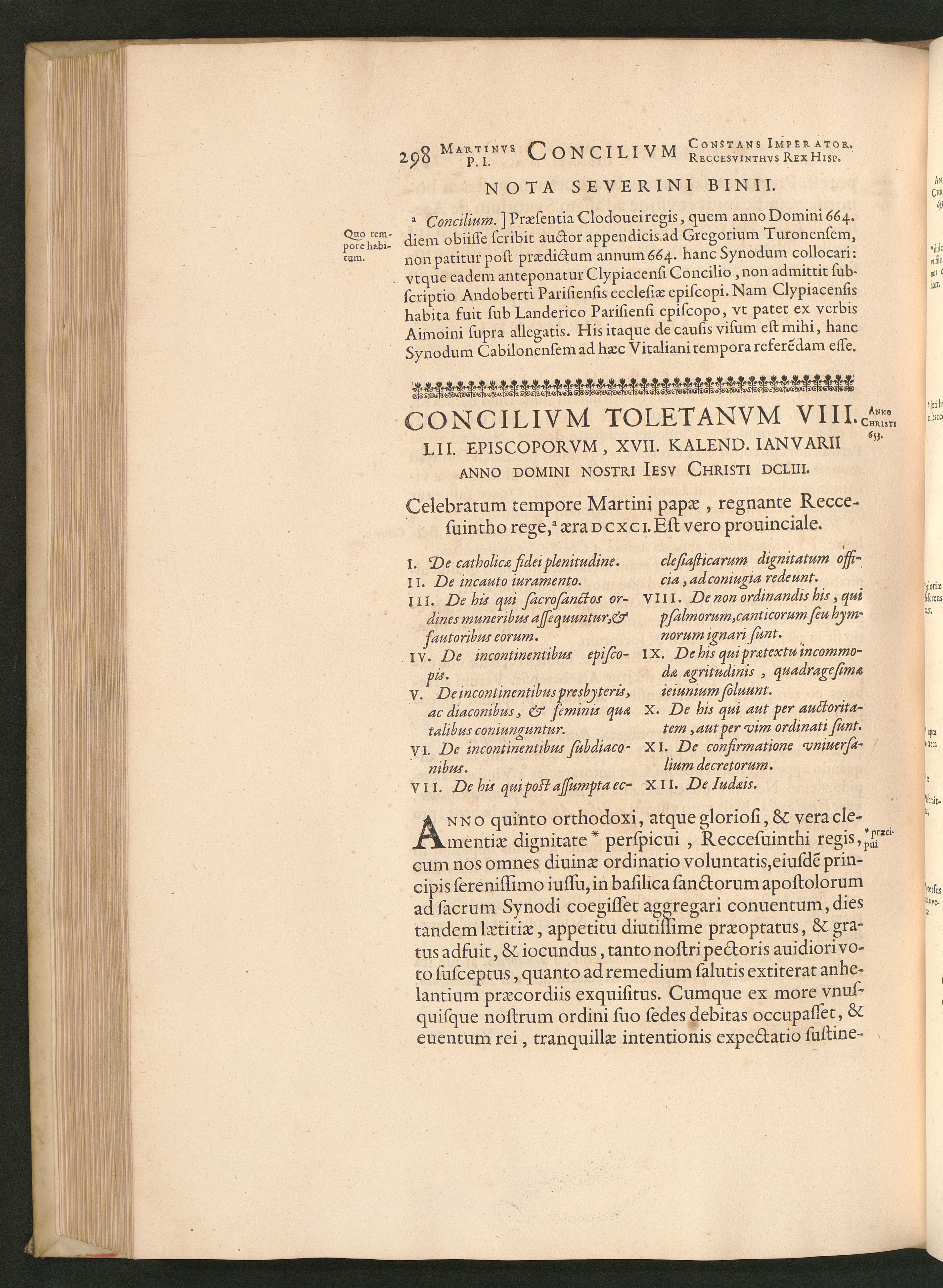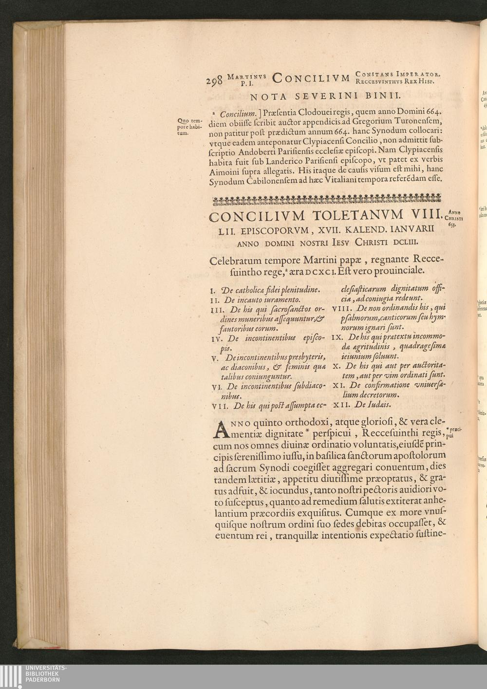 Concilivm Toletanvm VIII. LII. Episcoporvm, XVII. Kalend. Ianvarii Anno Domini Nostri[...]