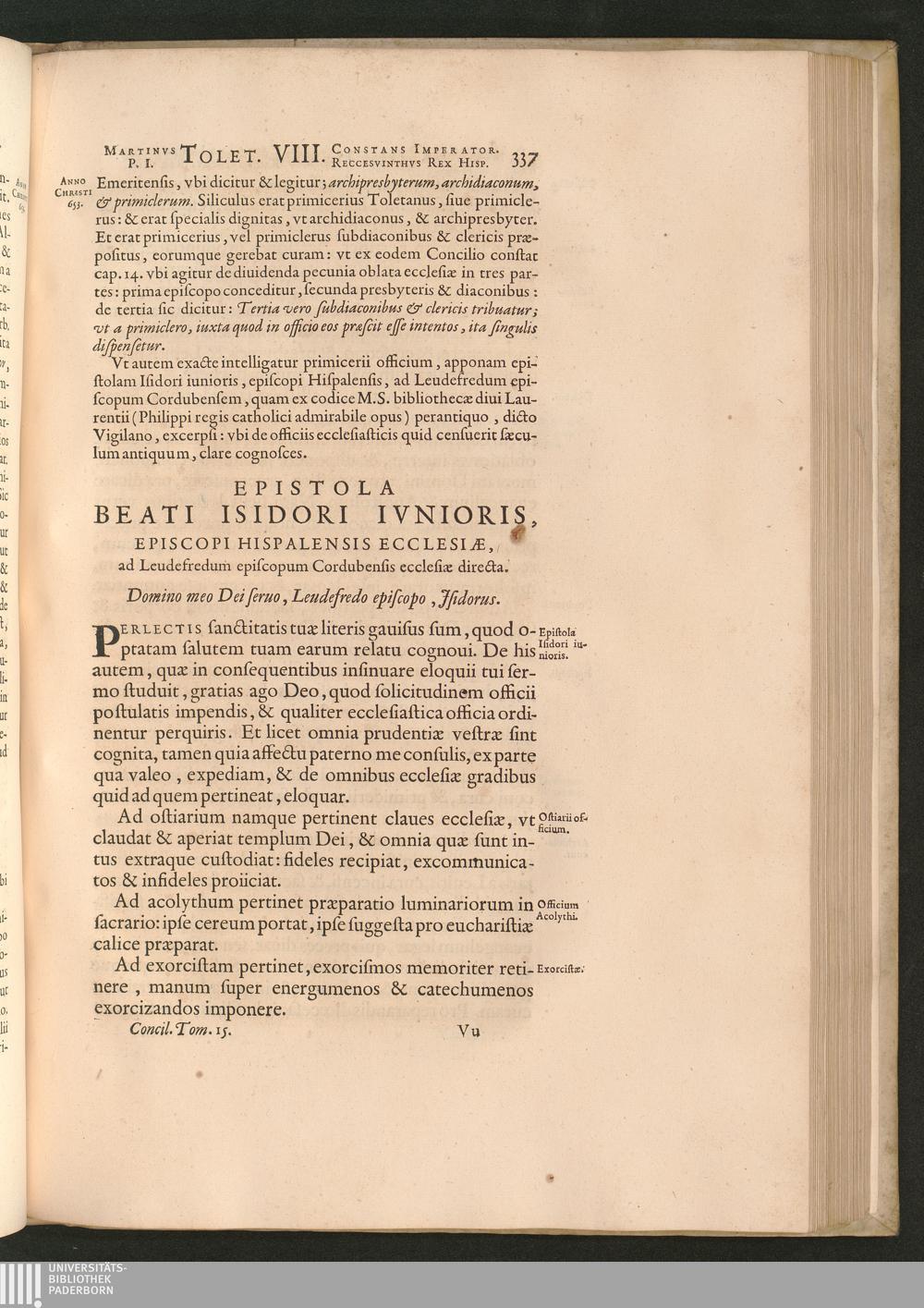 Epistola Beati Isidori Ivnioris, Episcopi Hispalensis Ecclesiae, ad Leudefredum episcopum[...]