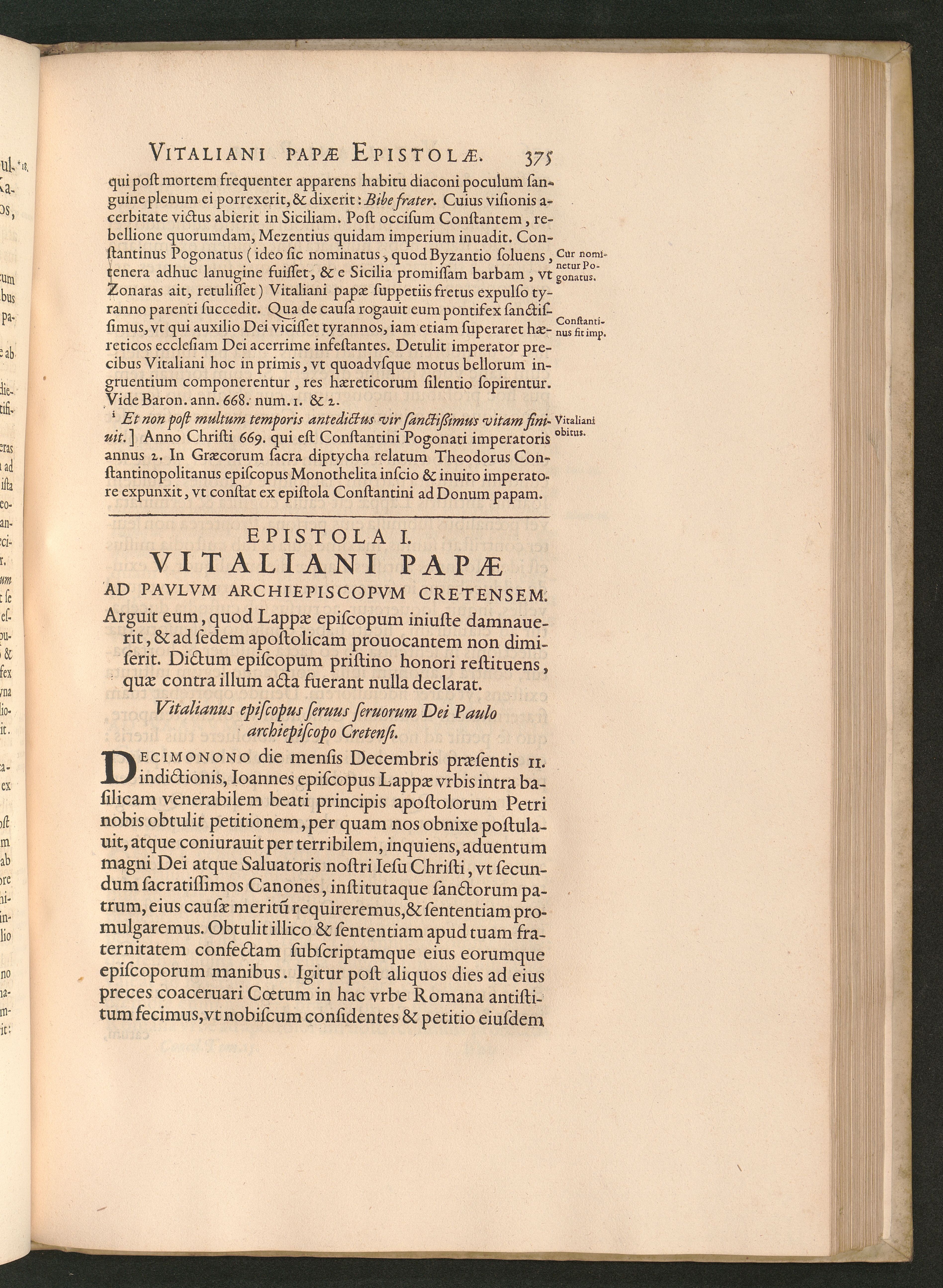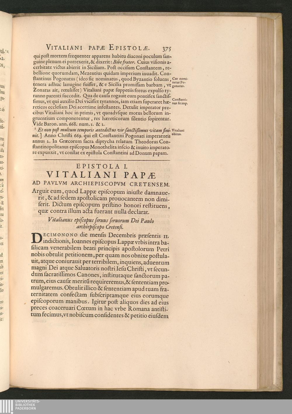Epistola I. Vitaliani Papae Ad Pavlvm Archiepiscopvm Cretensem. Arguit eum, quod[...]