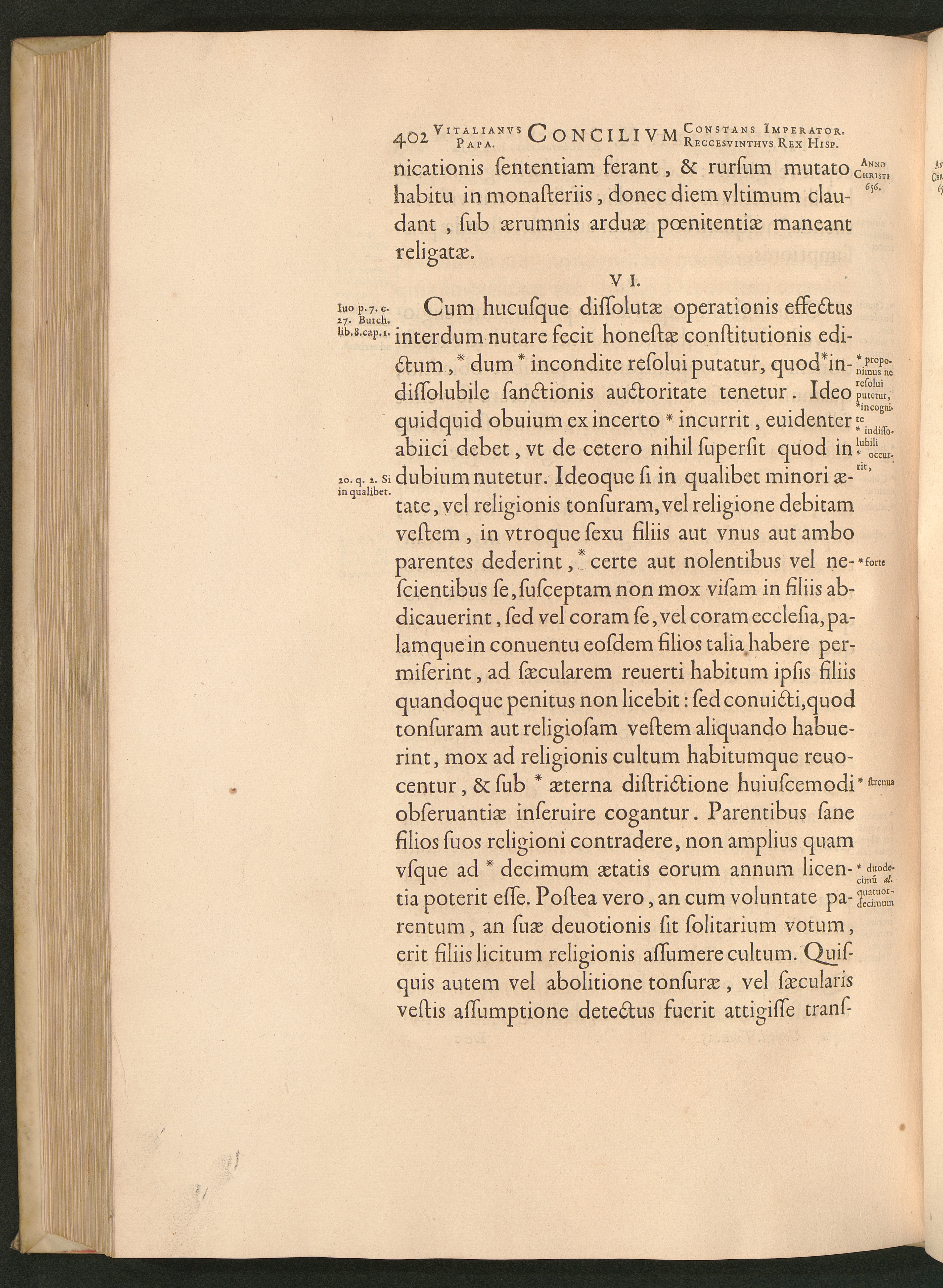 VI. De his qui in parua aetate coram parentibus religionis habitum tenuerint.