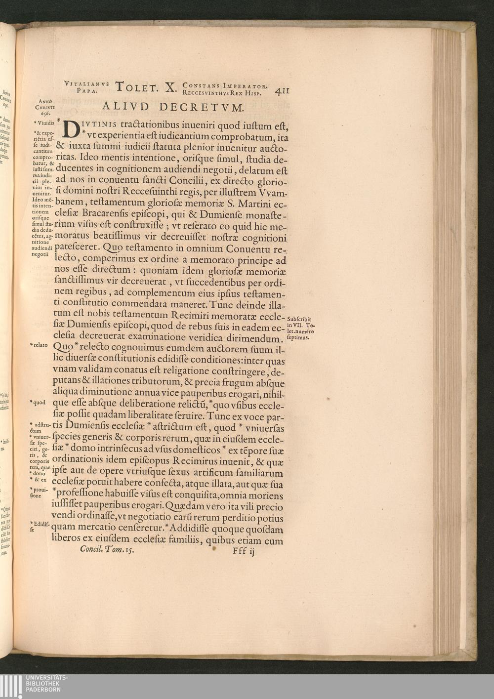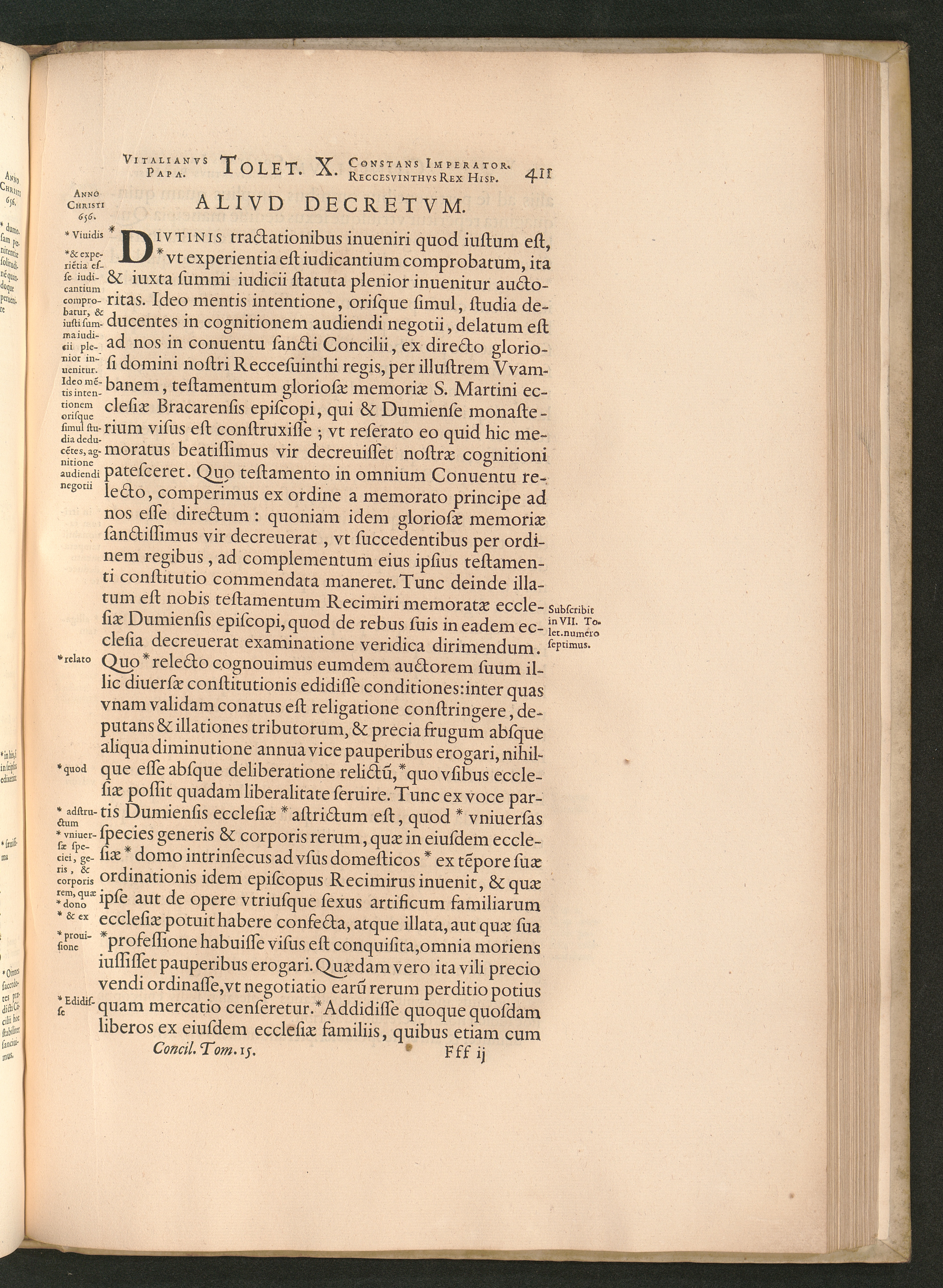 Concilivm Toletanvm X. Viginti Episcoporvm Anno Octavo Reccesvinthi Regis, aera DCXCIV.[...]
