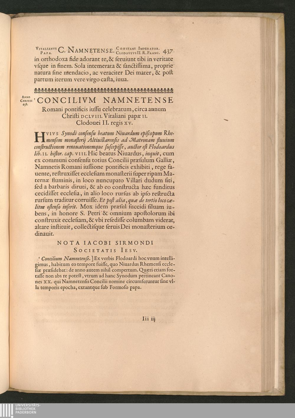 Concilivm Namnetense Romani pontificis iussu celebratum, circa annum Christi DCLVIII.[...]