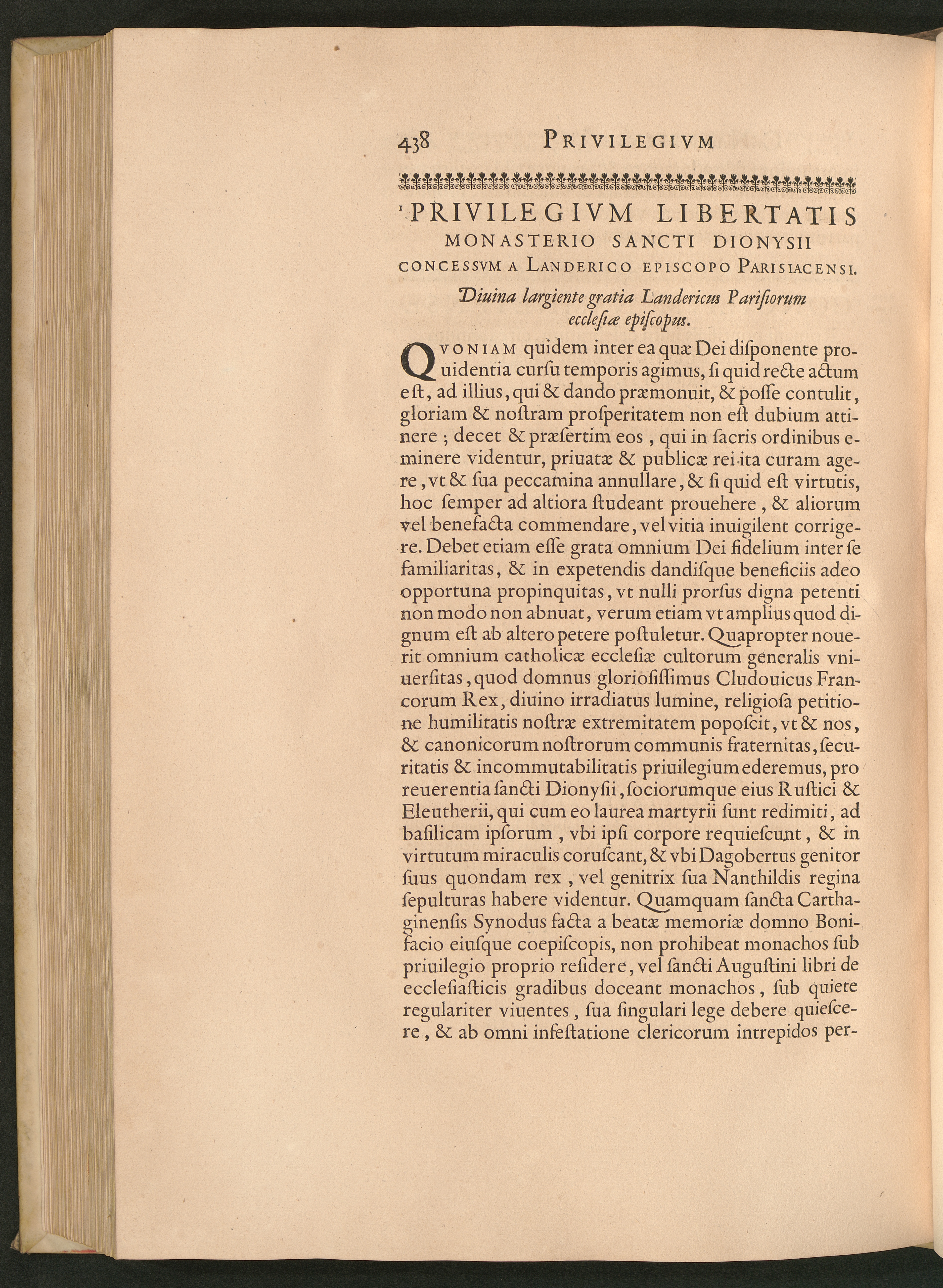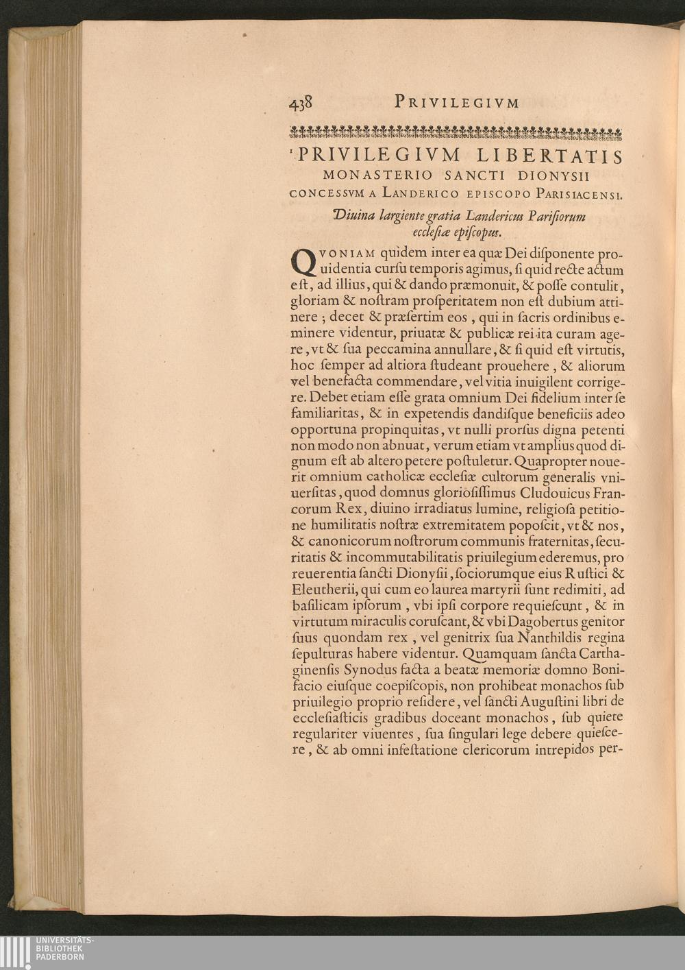 Privilegivm Libertatis Monasterio Sancti Dionysii Concessvm A Landerico Episcopo[...]