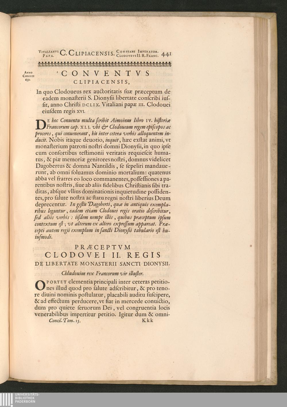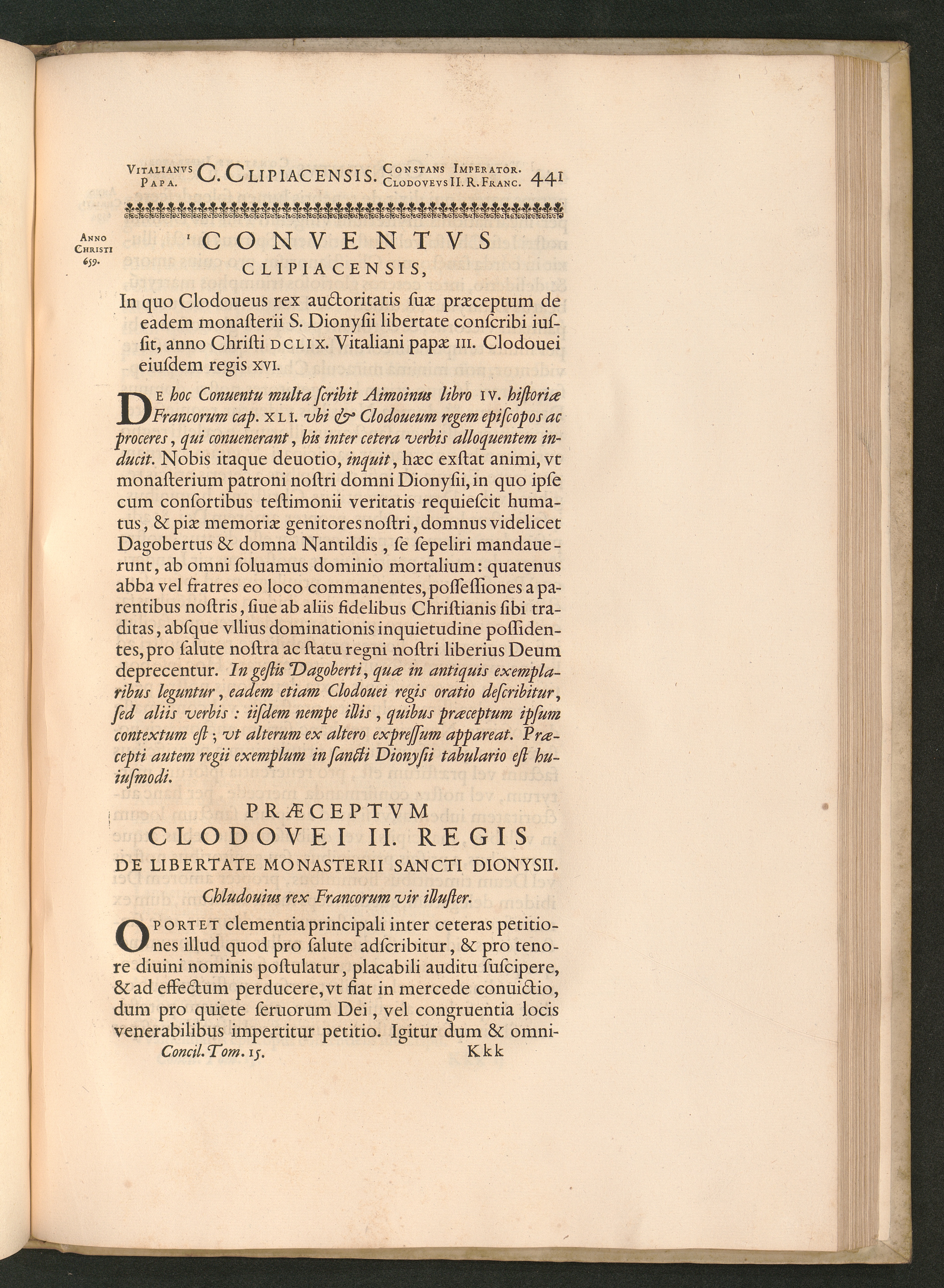 Conventvs Clipiacensis, In quo Clodoueus rex auctoritatis suae praeceptum de eadem[...]