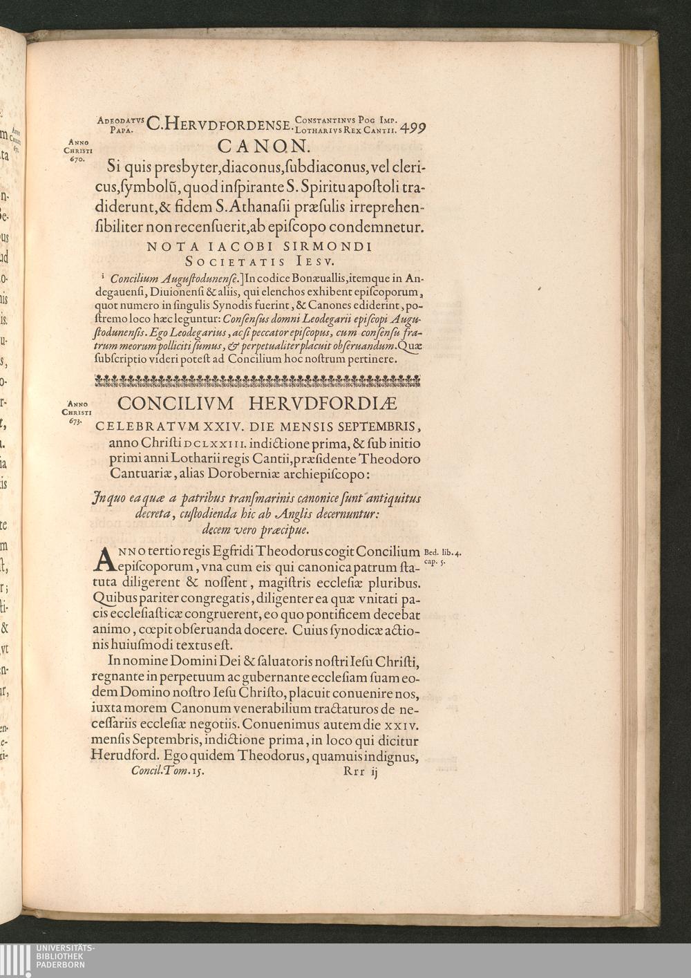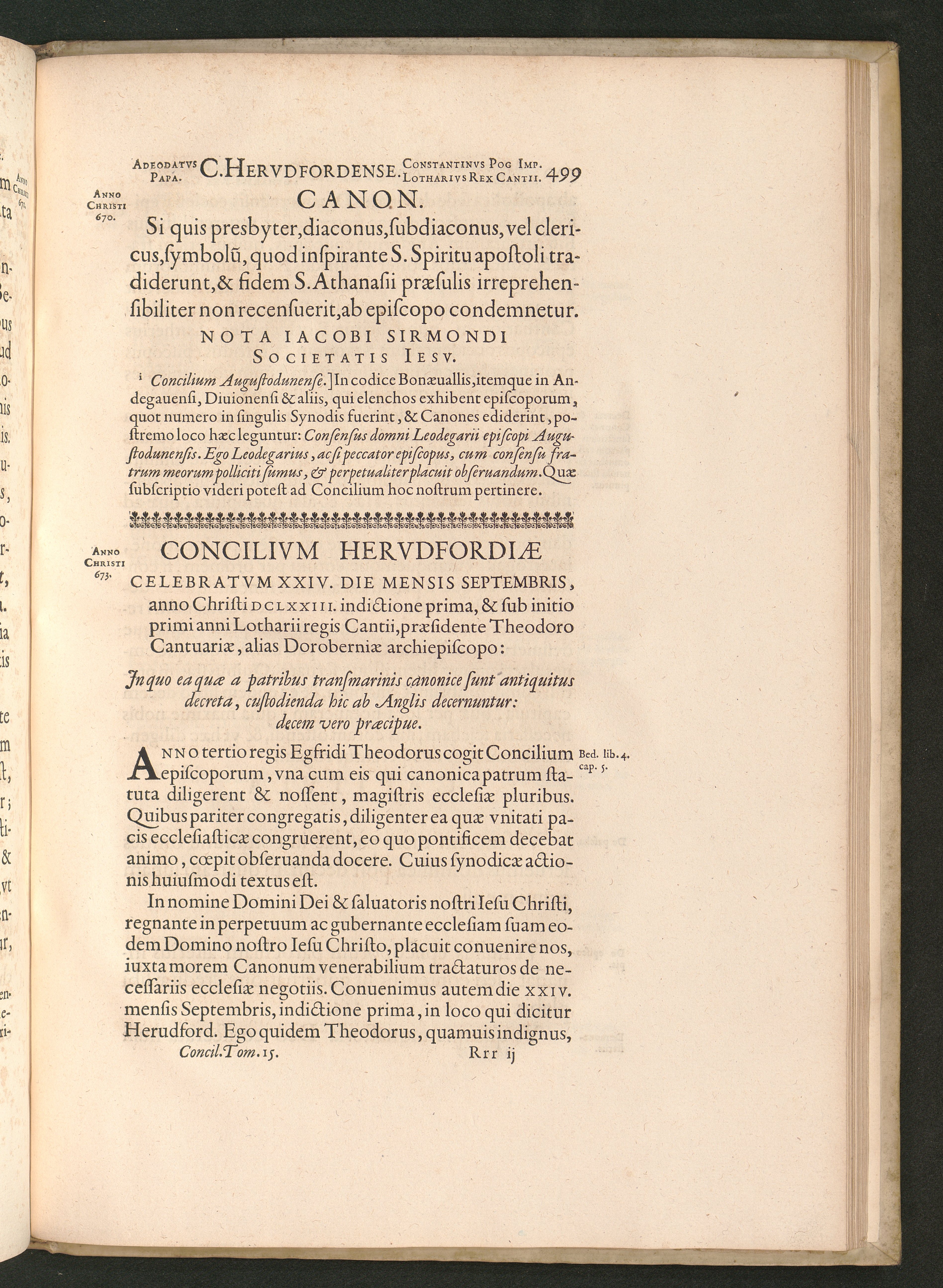 Concilivm Hervdfordiae Celebratvm XXIV. Die Mensis Septembris, anno Christi DCLXXIII.[...]