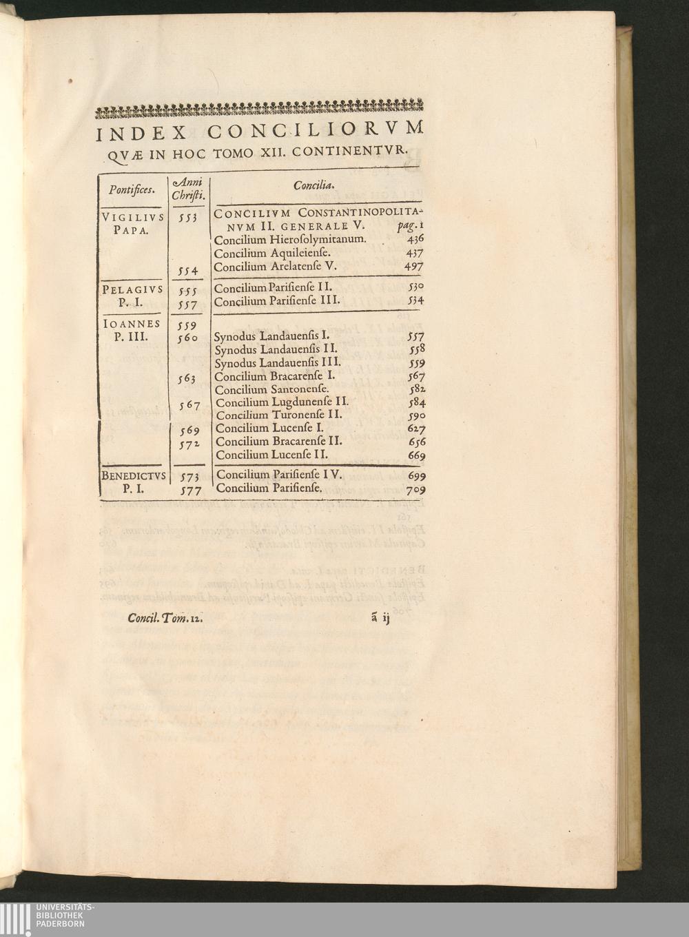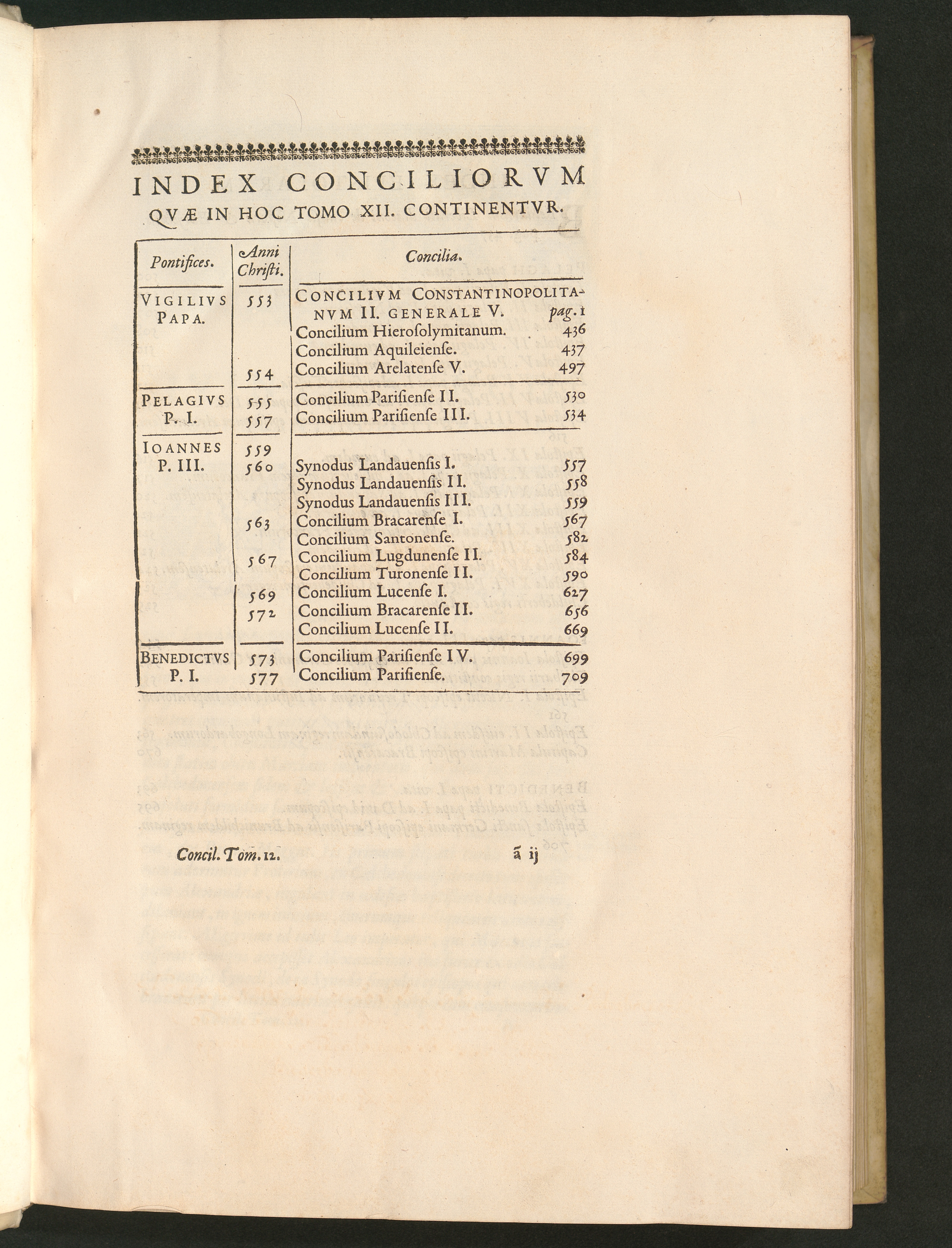 Index Conciliorvm Qvae In Hoc Tomo XII. Continentvr.