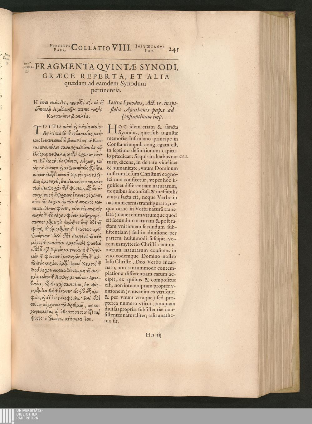 Fragmenta Qvintae Synodi, Graece Reperta, Et Alia quaedam ad eamdem Synodum pert[...]