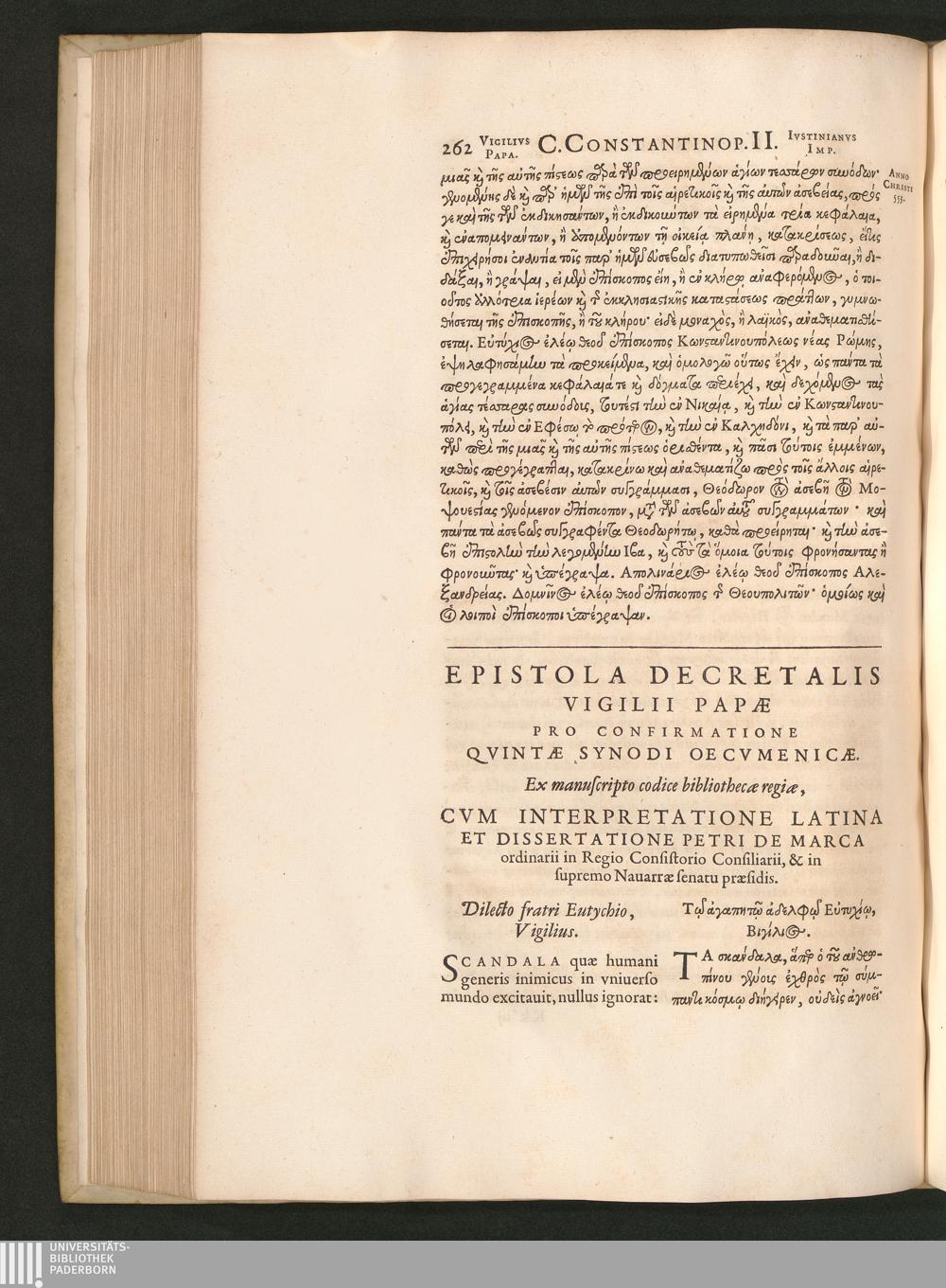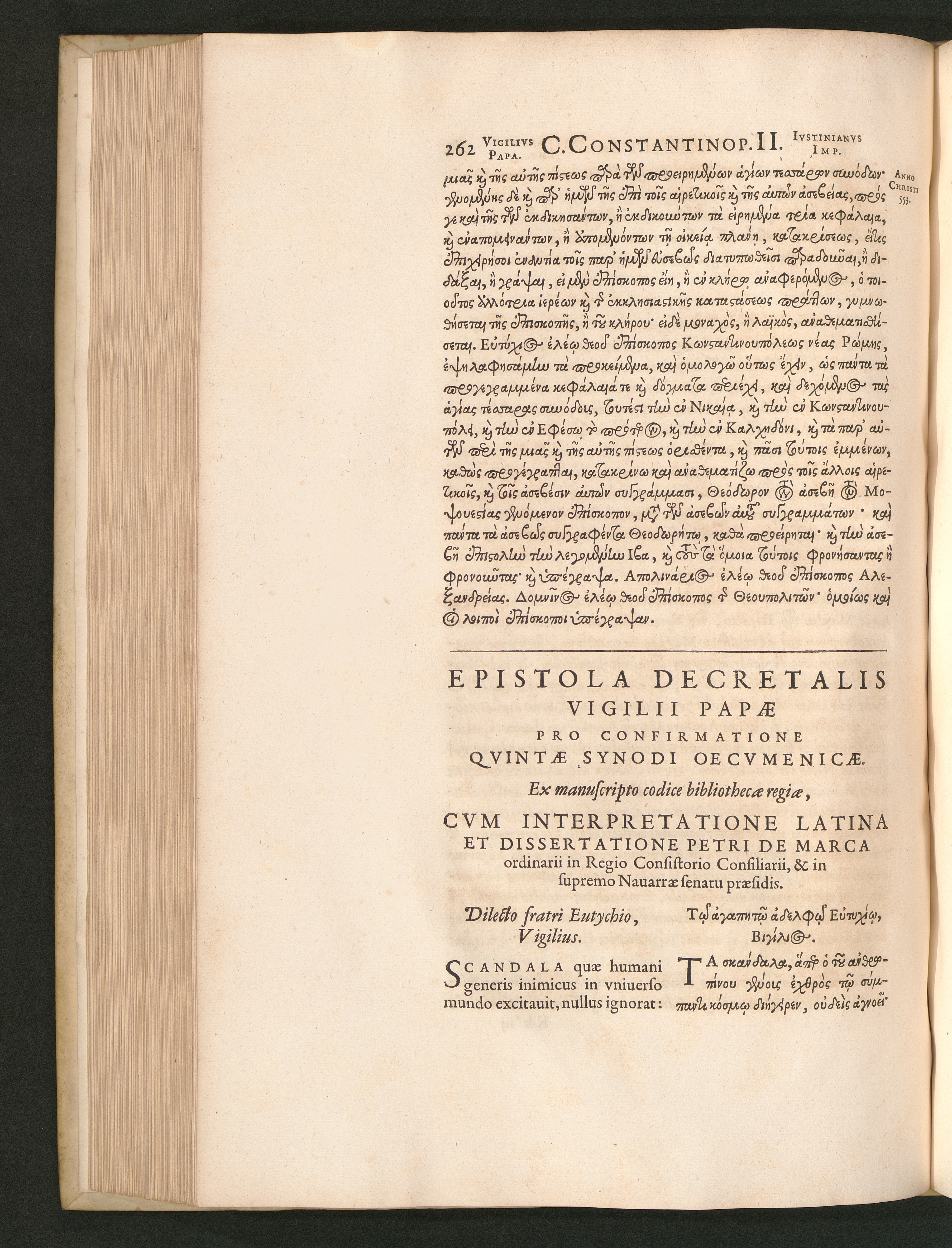 Epistola Decretalis Vigilii Papae Pro Confirmatione Qvintae Synodi Oecvmenicae.