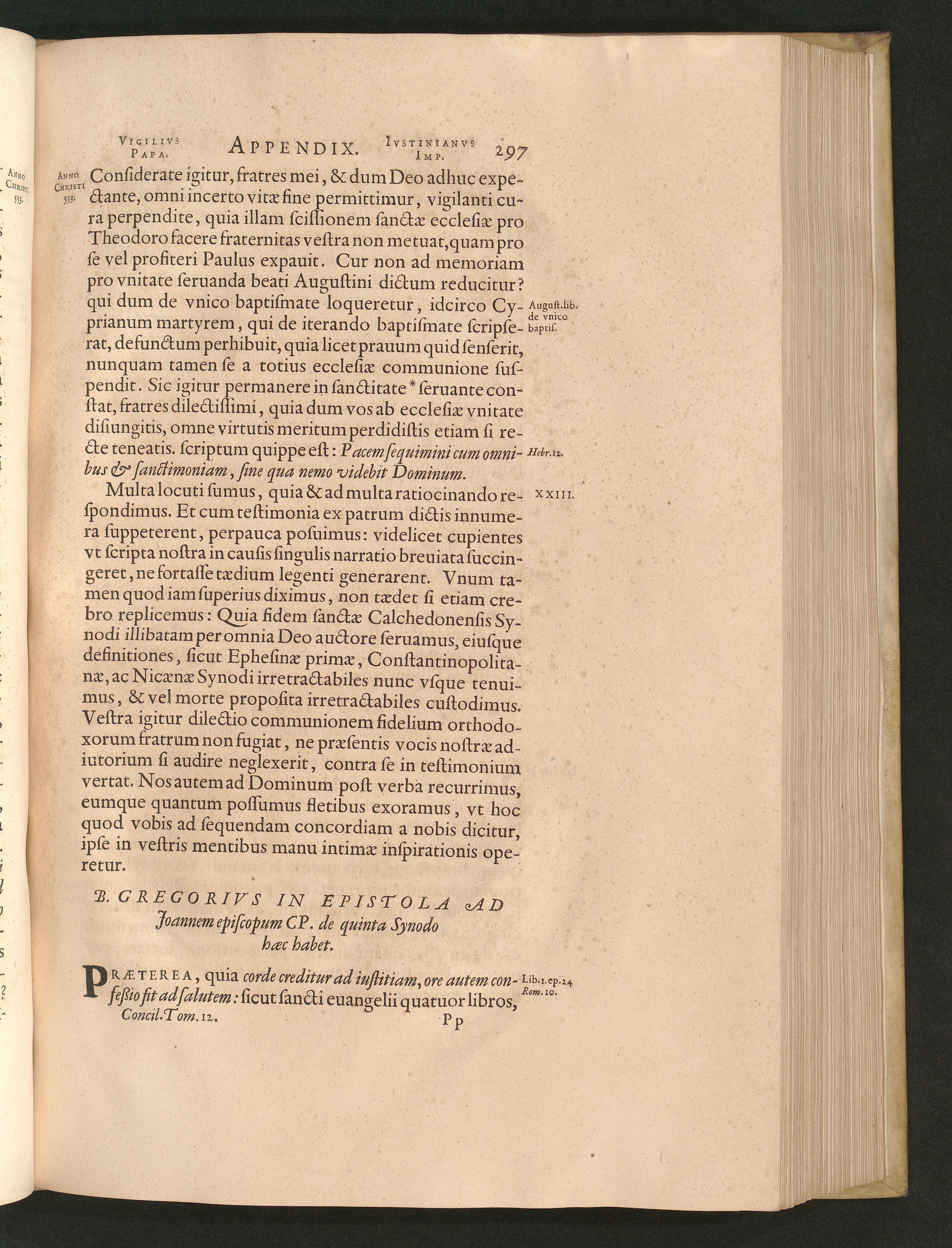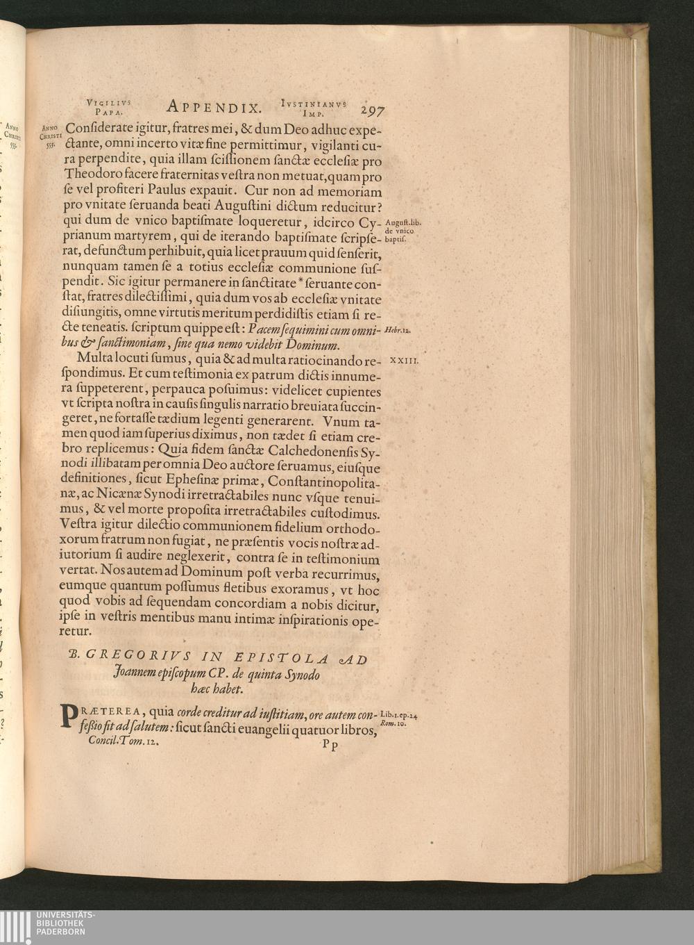 B. Gregorivs In Epistola Ad Joannem episcopum CP. de quinta Synodo haec habet.