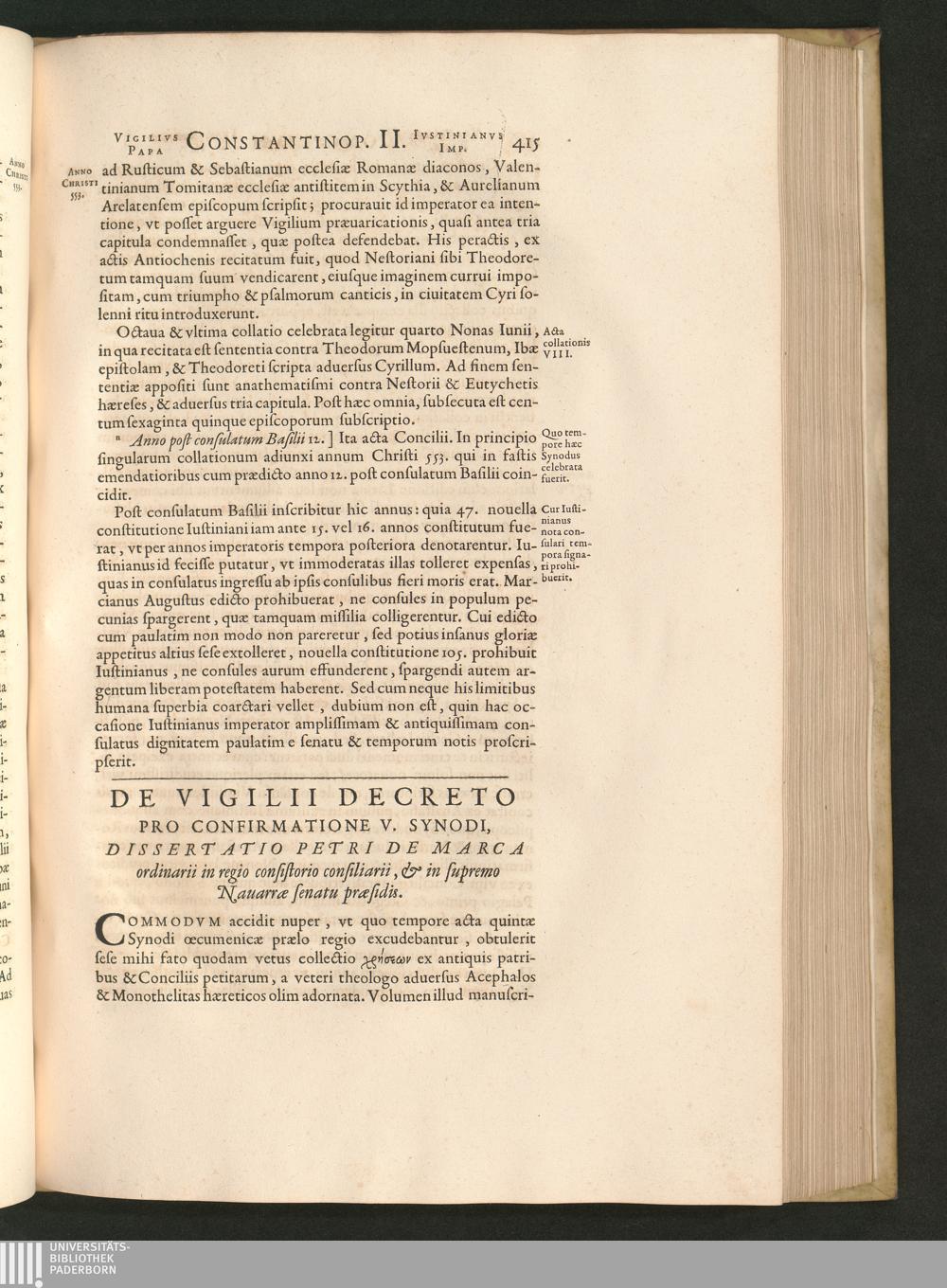 De Vigilii Decreto Pro Confirmatione V. Synodi, Dissertatio Petri De Marca ordinarii[...]