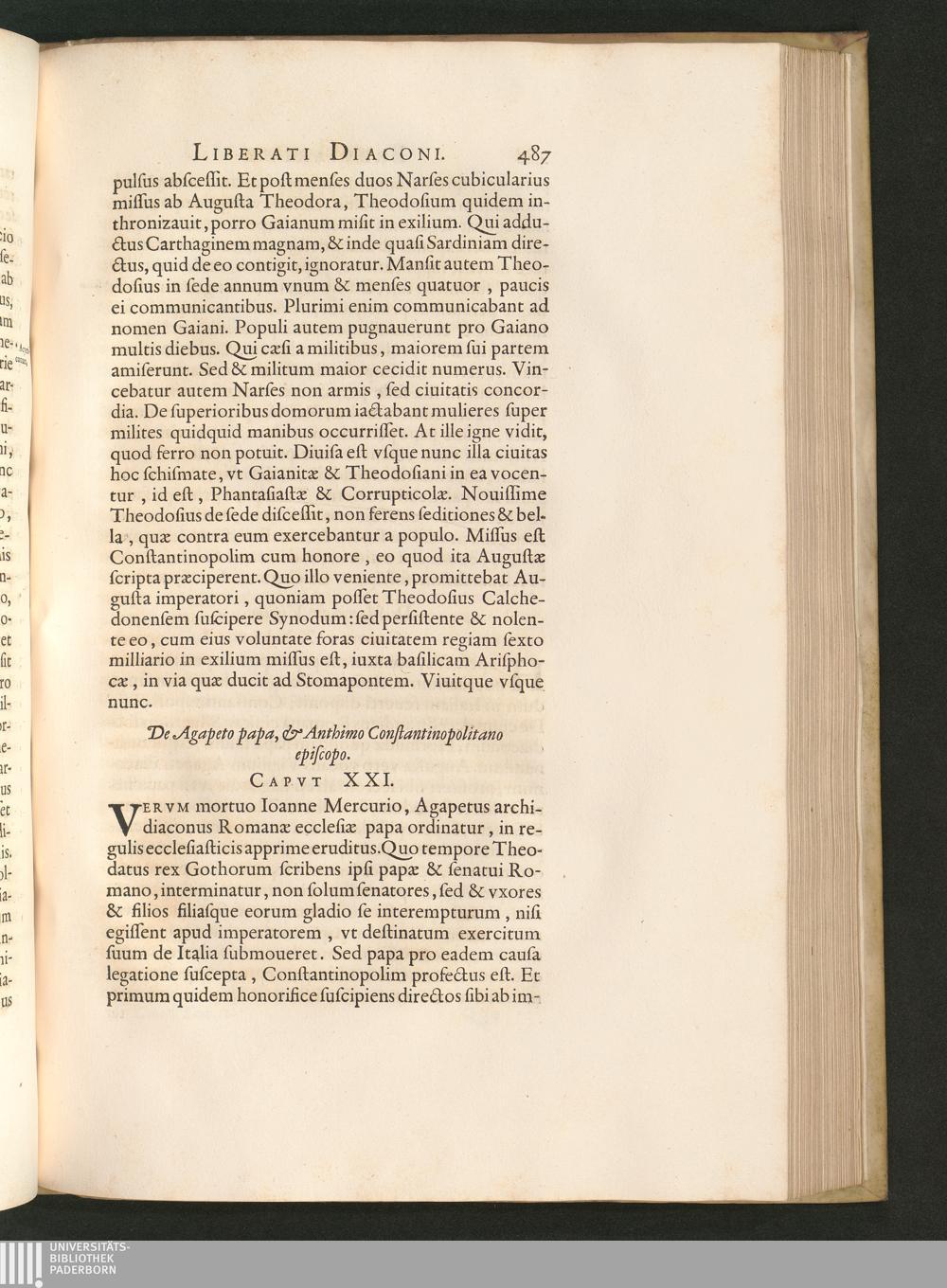 XXI. De Agapeto papa, & Anthimo Constantinopolitano episcopo.