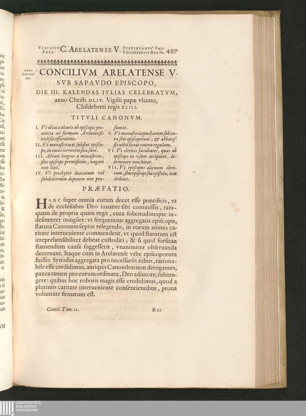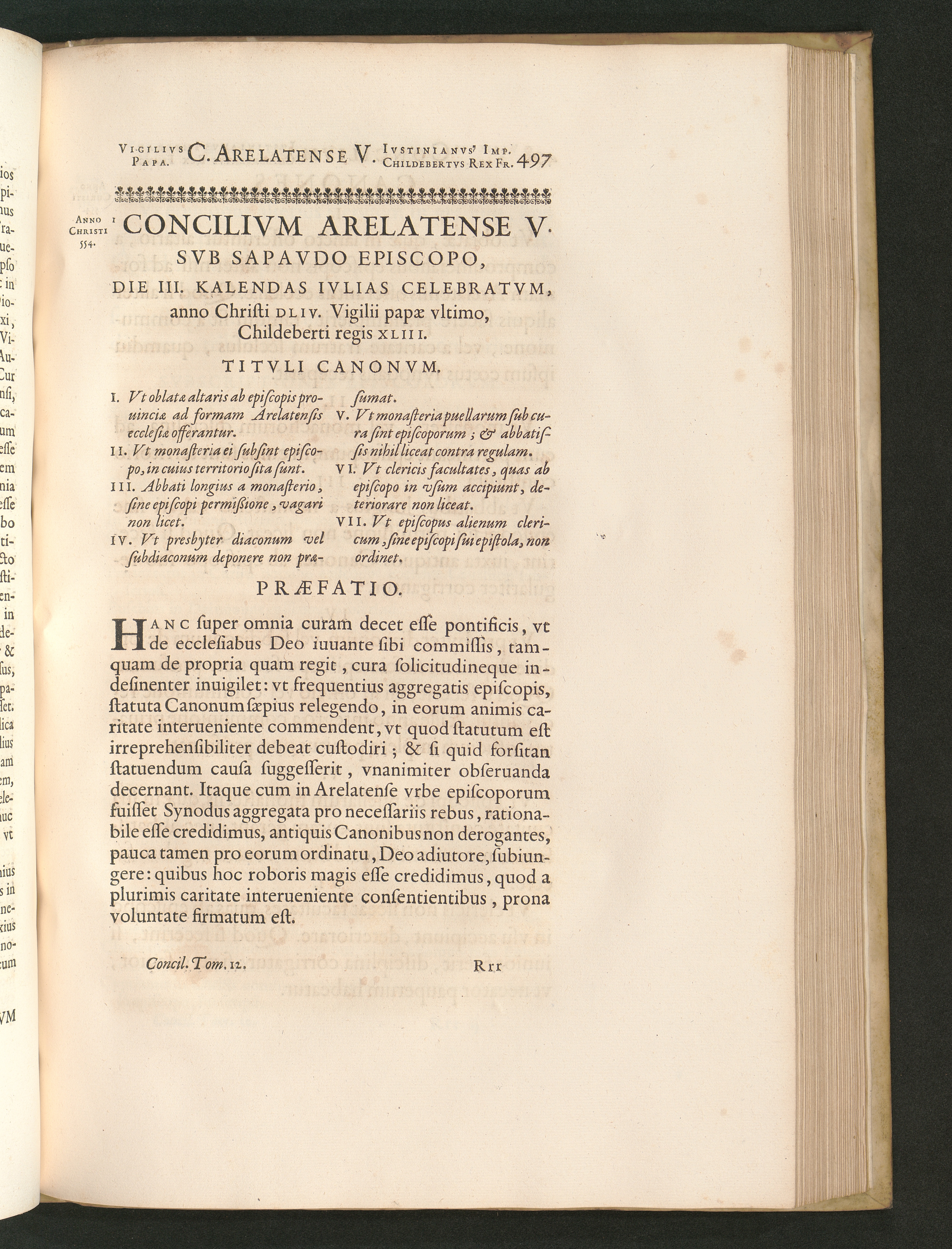 Concilivm Arelatense V. Svb Sapavdo Episcopo, Die III. Kalendas Ivlias Celebratvm,[...]