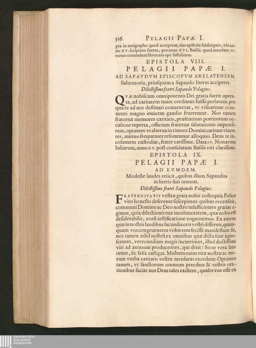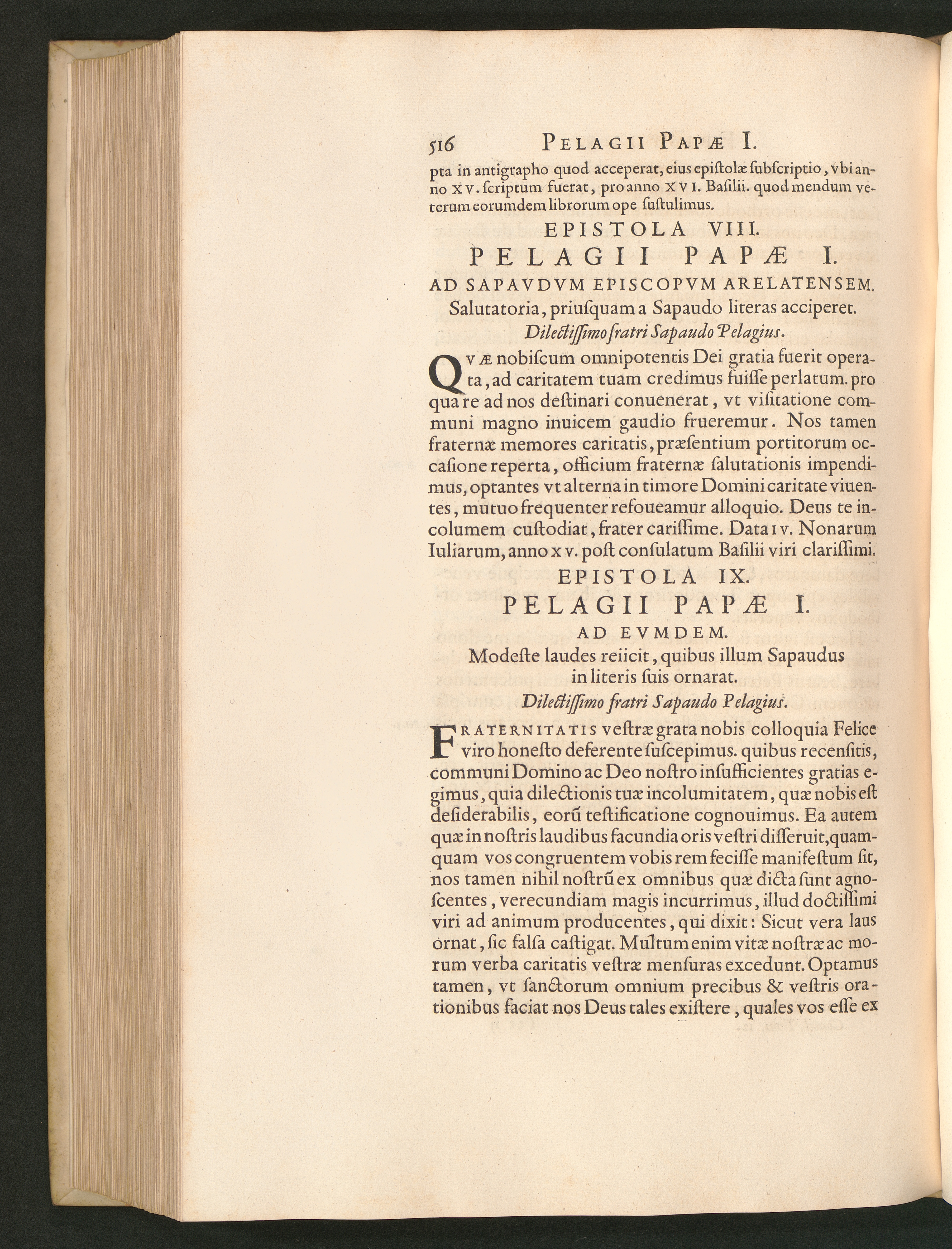 Epistola IX. Pelagii Papae I. Ad Evmdem. Modeste laudes reiicit, quibus illum Sapaudus[...]