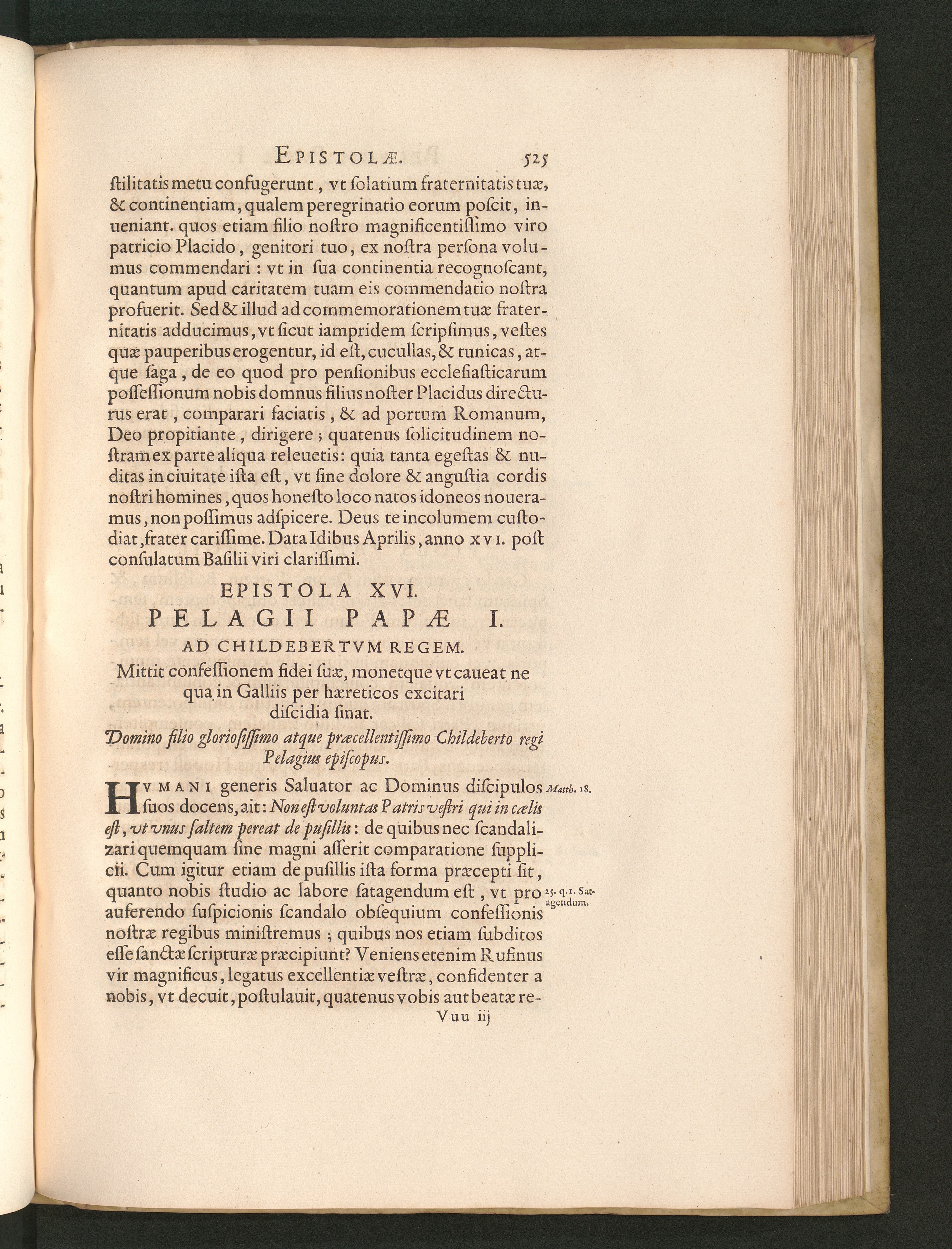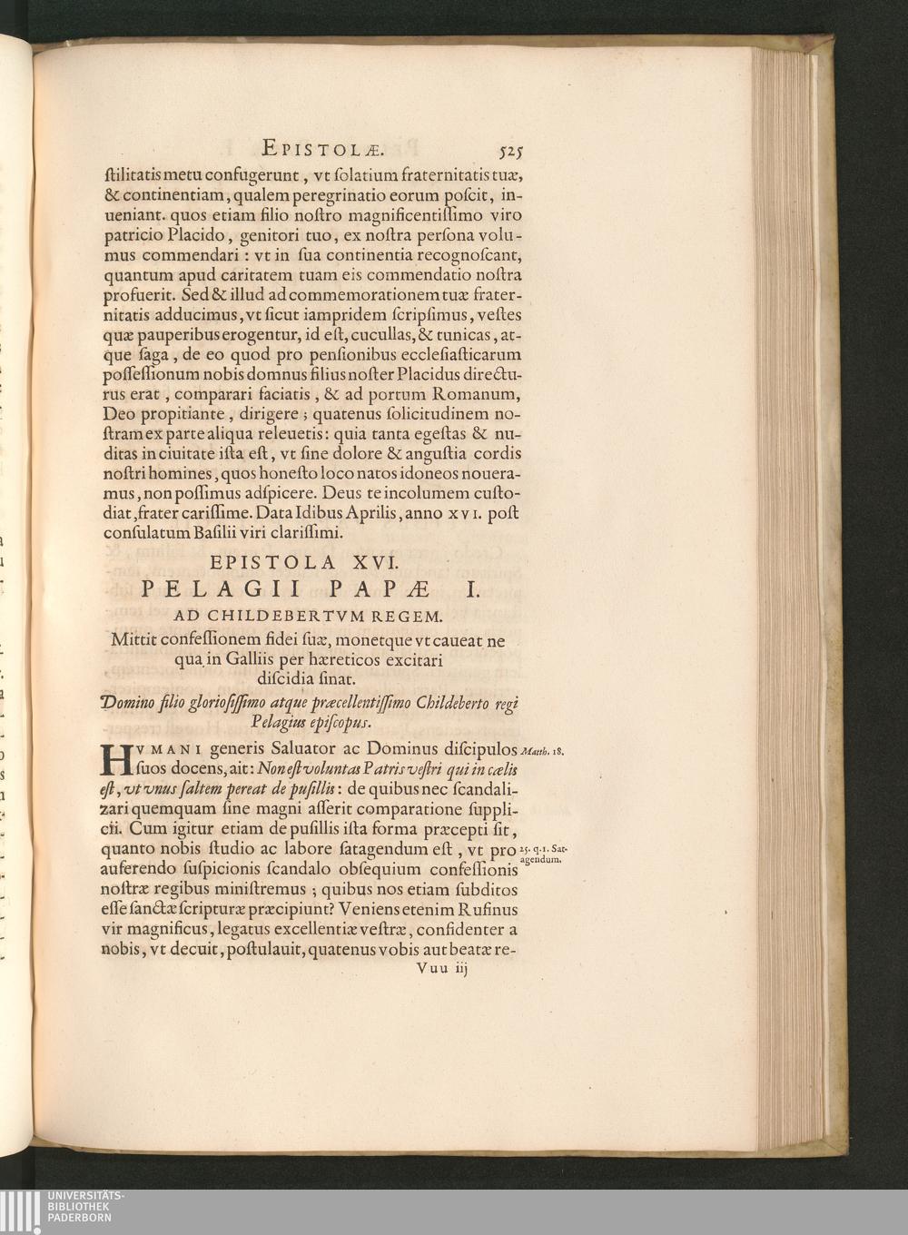 Epistola XVI. Pelagii Papae I. Ad Childebertvm Regem. Mittit confessionem fidei suae,[...]