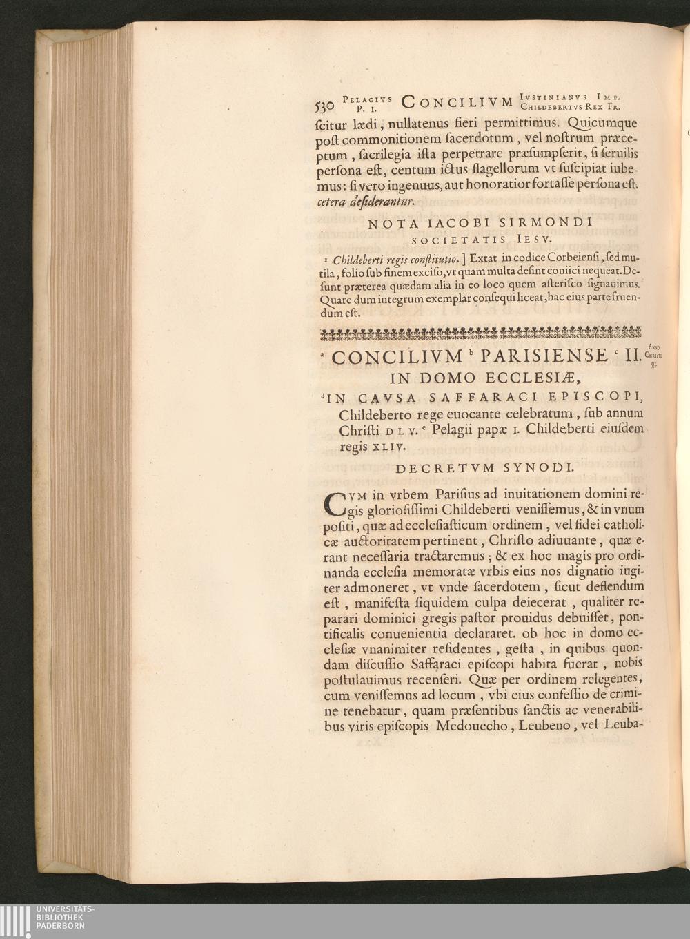 Concilivm Parisiense II. In Domo Ecclesiae, In Cavsa Saffaraci Episcopi, Childeberto[...]
