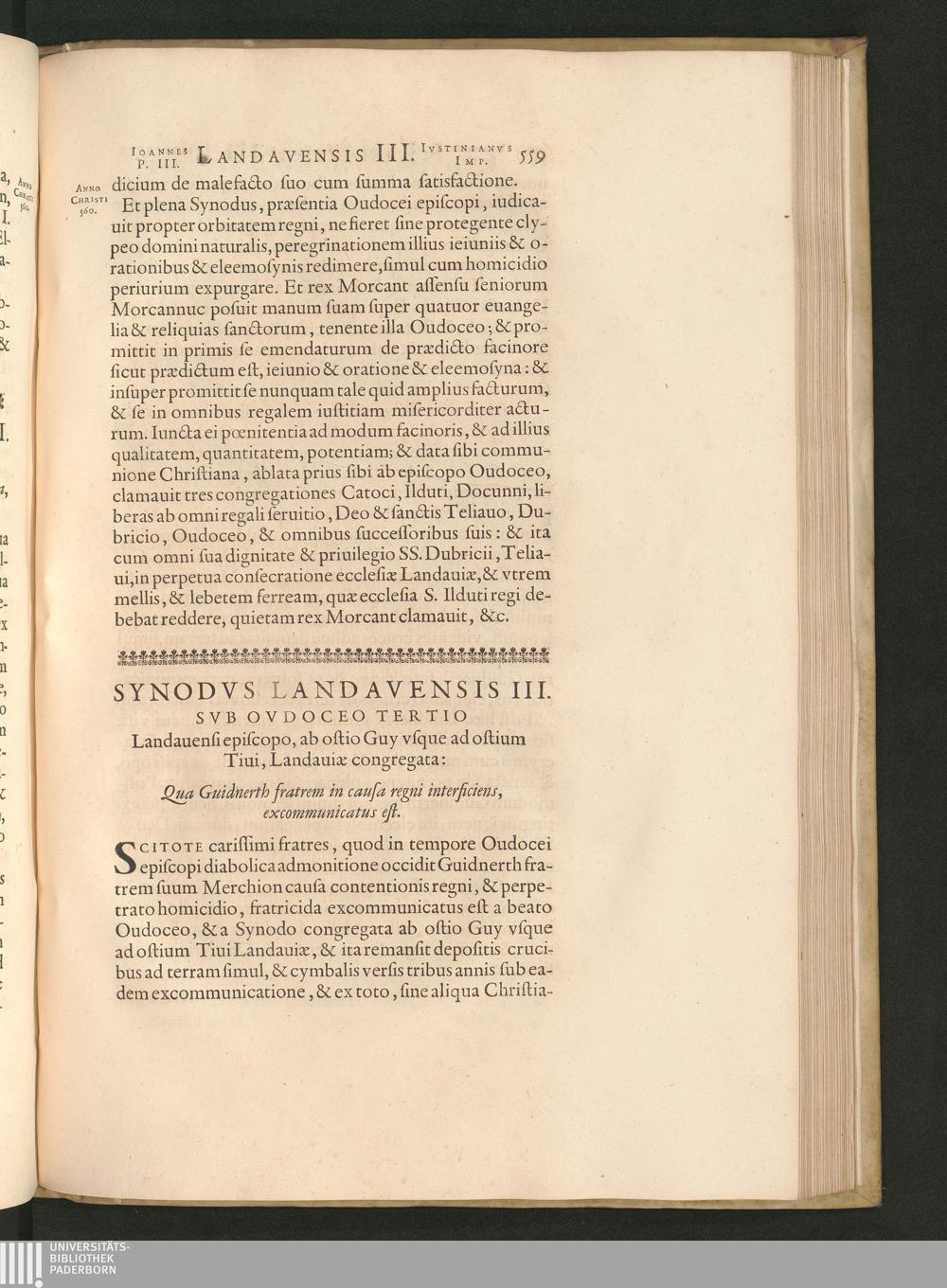 Synodvs Landavensis III. Svb Ovdoceo Tertio Landauensi episcopo, ab ostio Guy vsque[...]