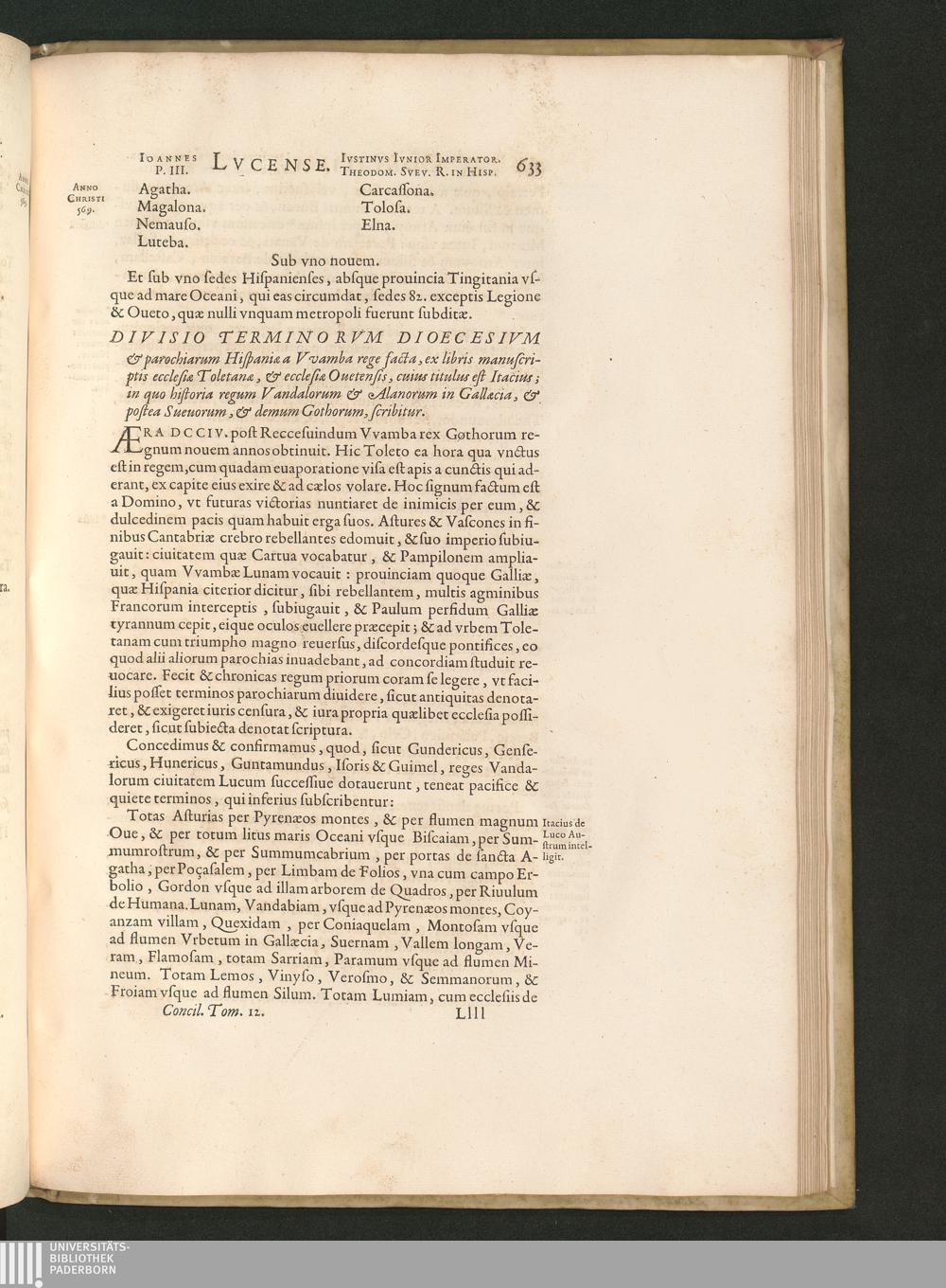 Divisio Terminorvm Dioecesivm & parochiarum Hispaniae a Vvamba rege facta, ex libris[...]