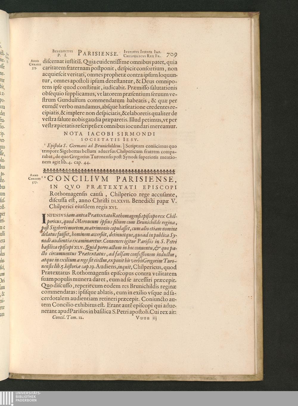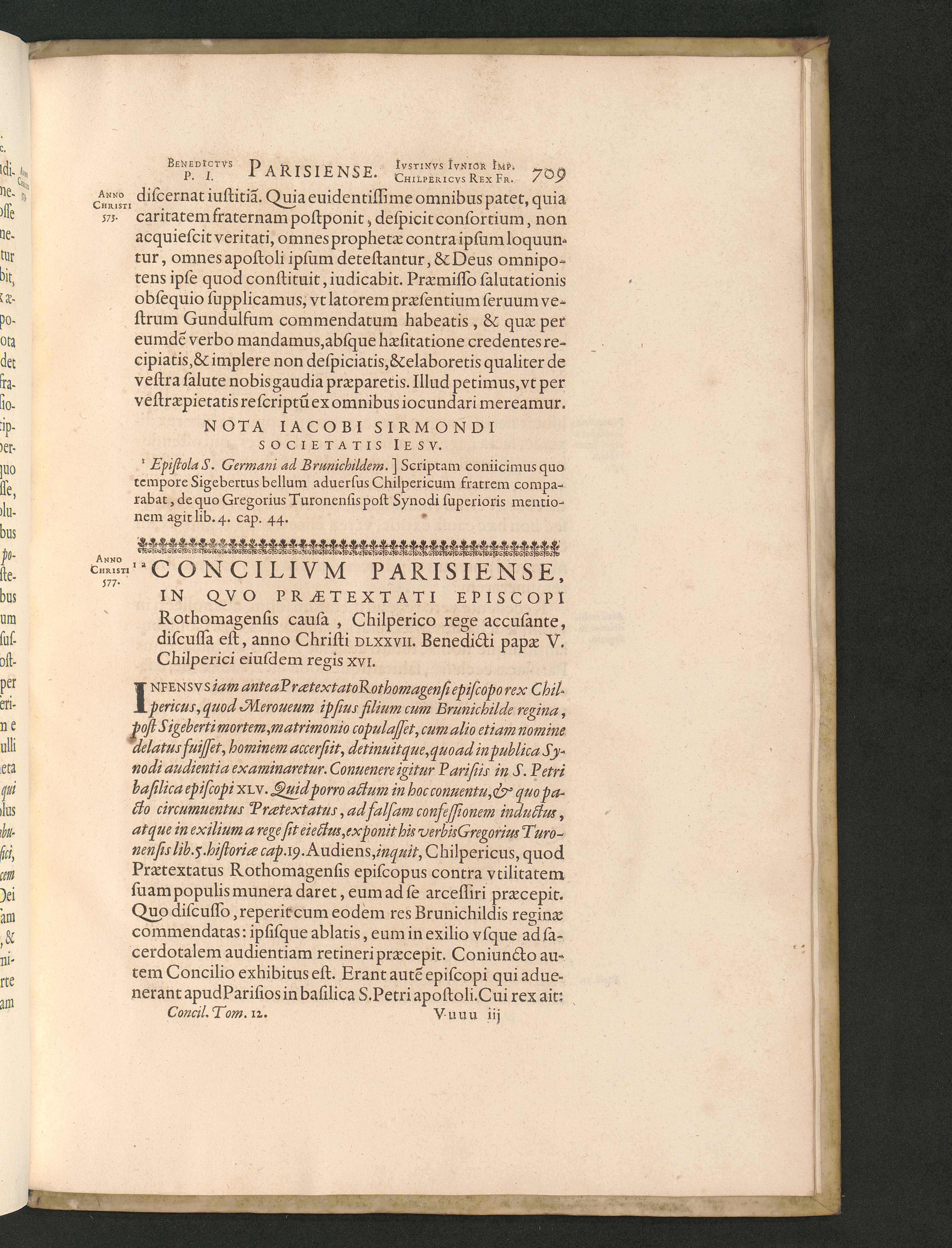 Concilivm Parisiense, In Qvo Praetextati Episcopi Rothomagensis causa, Chilperico[...]