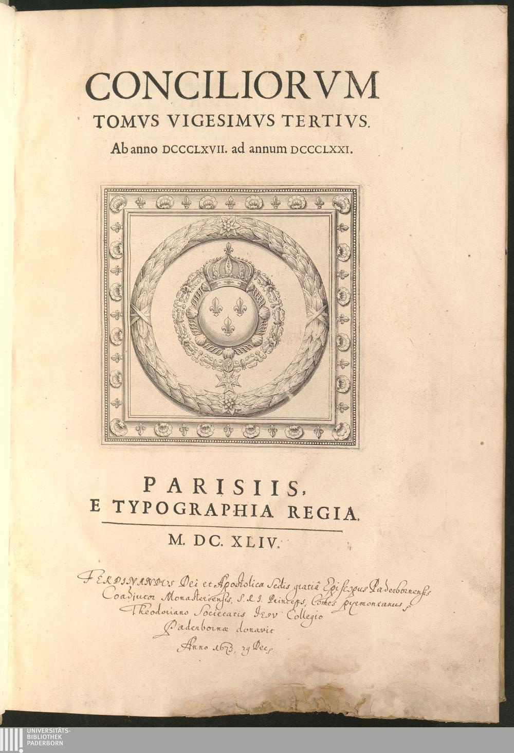 Tomvs Vigesimvs Tertivs (1644) Ab anno DCCCLXVII. ad annum DCCCLXXI.