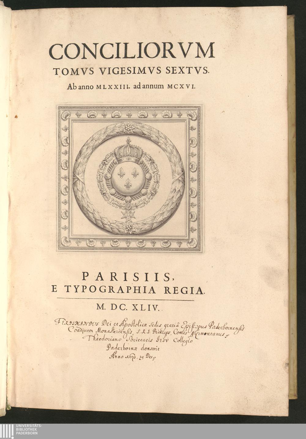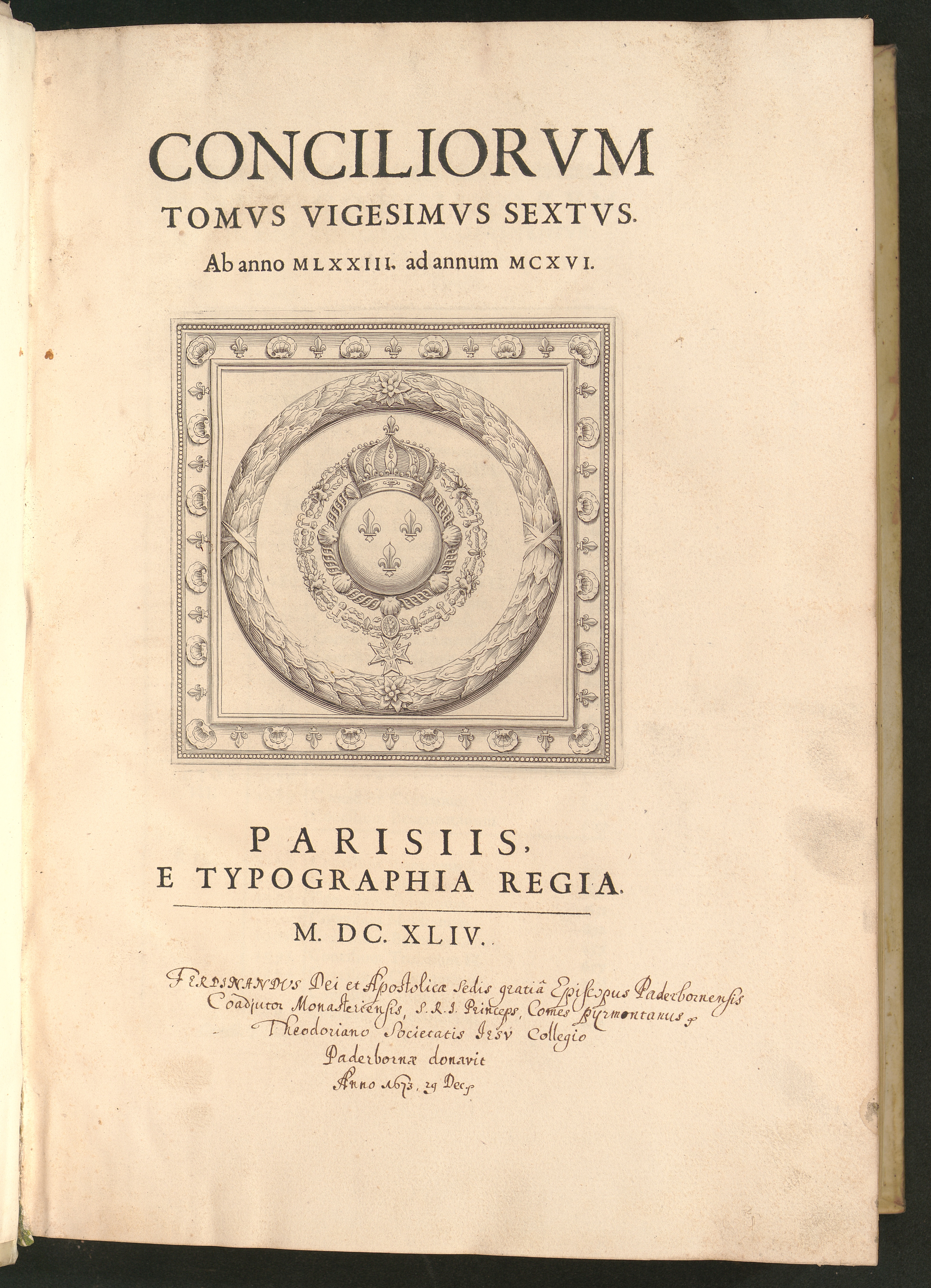 Tomvs Vigesimvs Sextvs (1644) Ab anno MLXXIII. ad annum MCXVI.