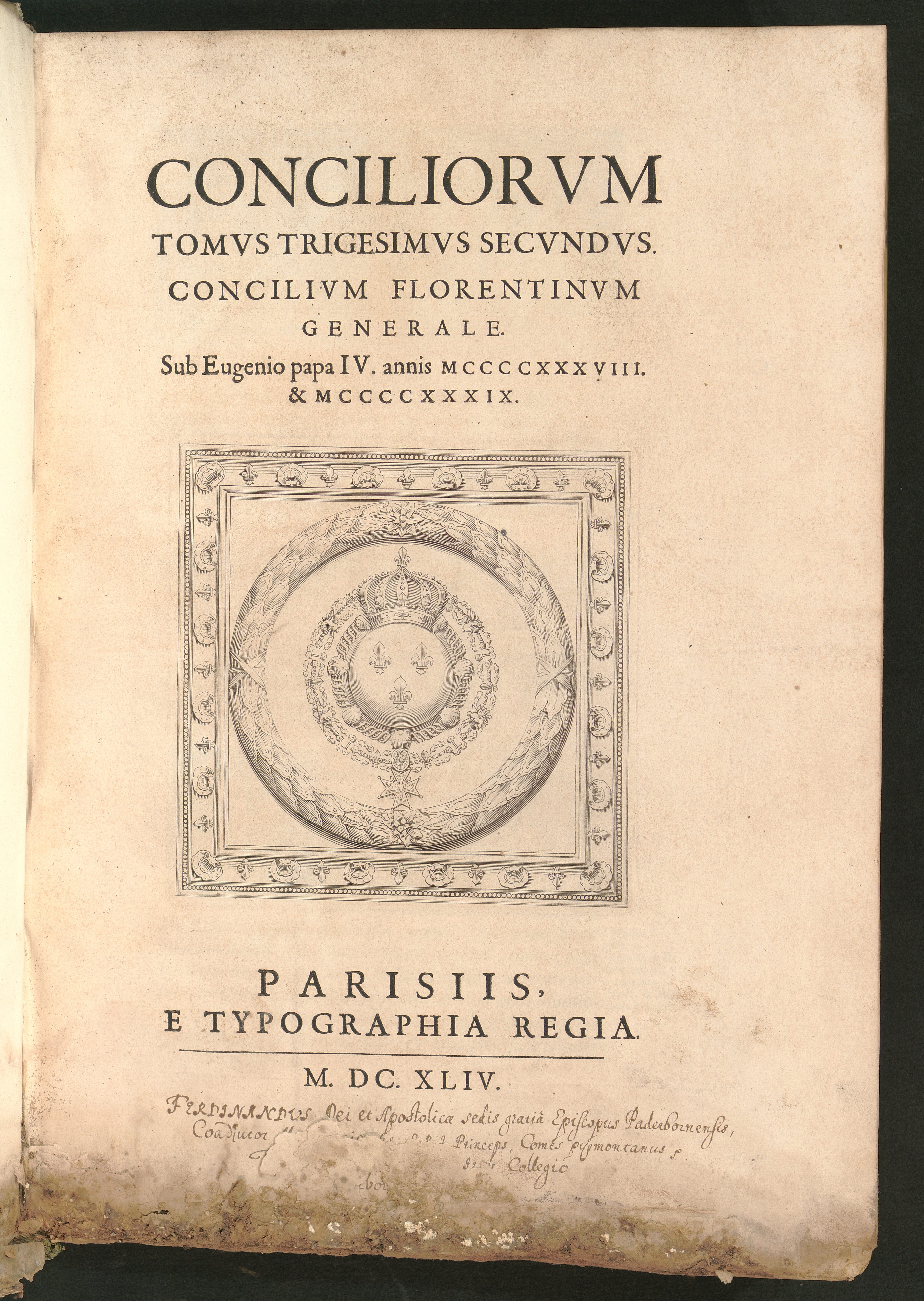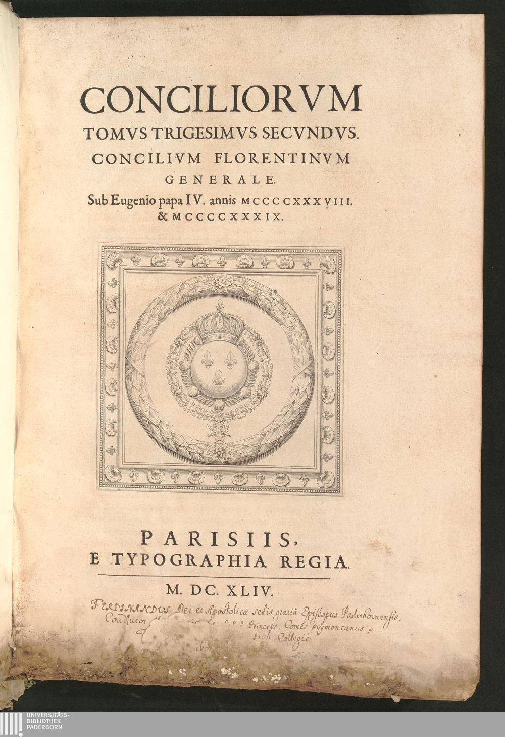 Tomvs Trigesimvs Secvndvs (1644) Concilivm Florentinvm Generale. Sub Eugenio papa IV. annis MCCCCXXXVIII. & MCCCCXXXIX.