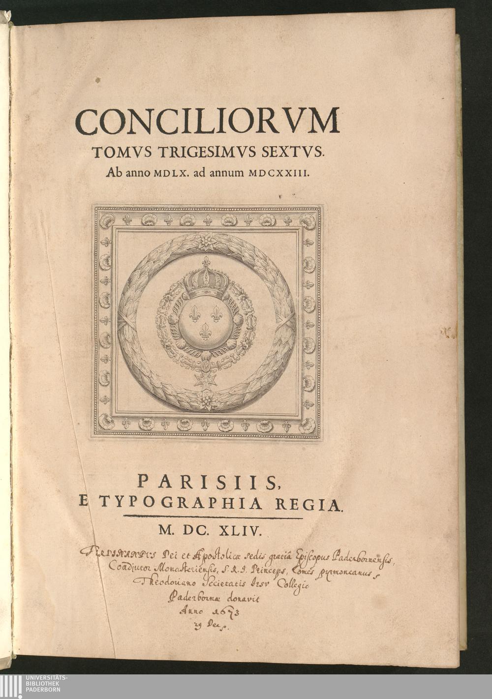 Tomvs Trigesimvs Sextvs (1644) Ab anno MDLX. ad annum MDCXXIII.